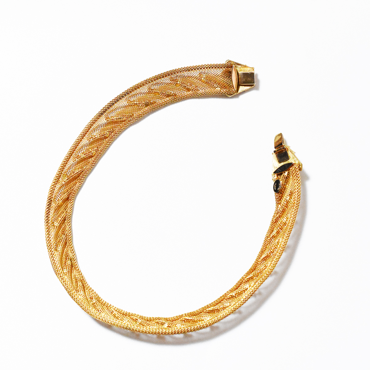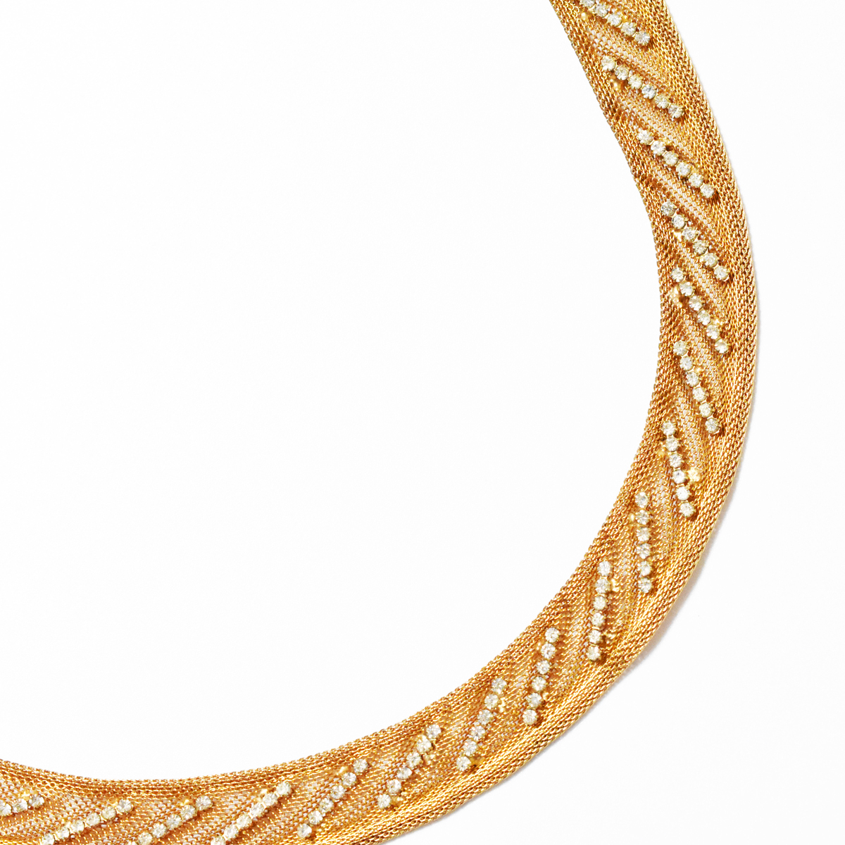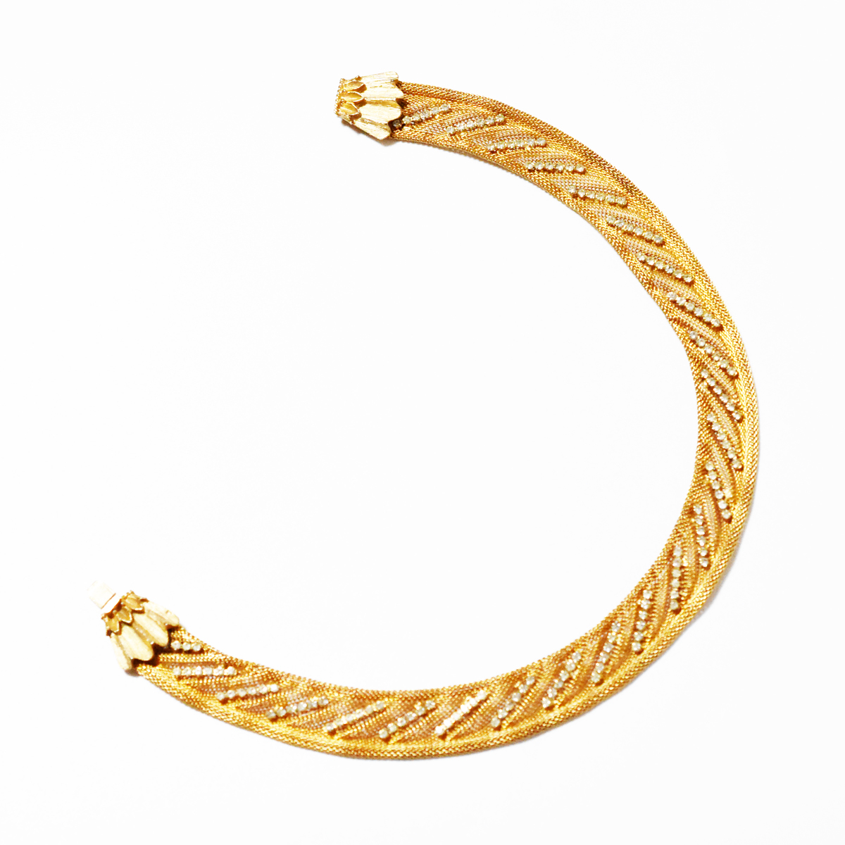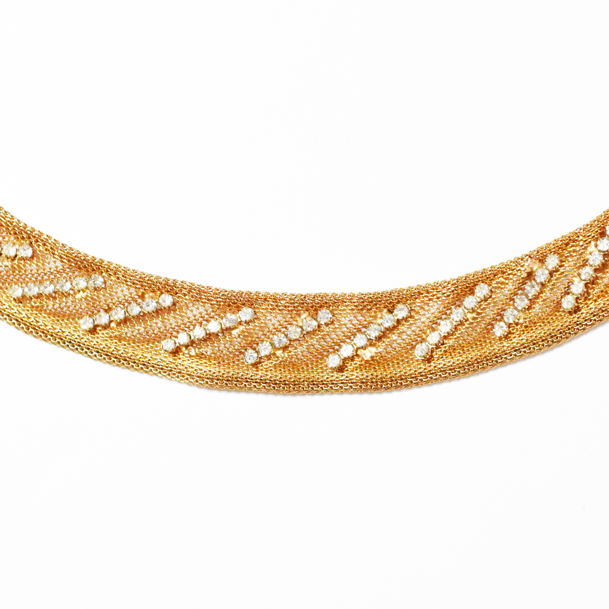 幅の広いメッシュメタル素材にクリアラインストーンが輝くインパクトあるヴィンテージチョーカー。
