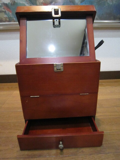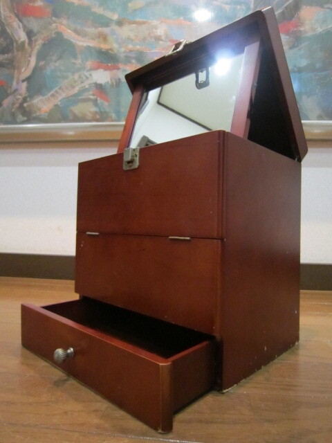 アンティーク レトロ ビンテージ 骨董 宝石箱 木製 ジュエリー ボックス アクセサリー ケース 鏡付き