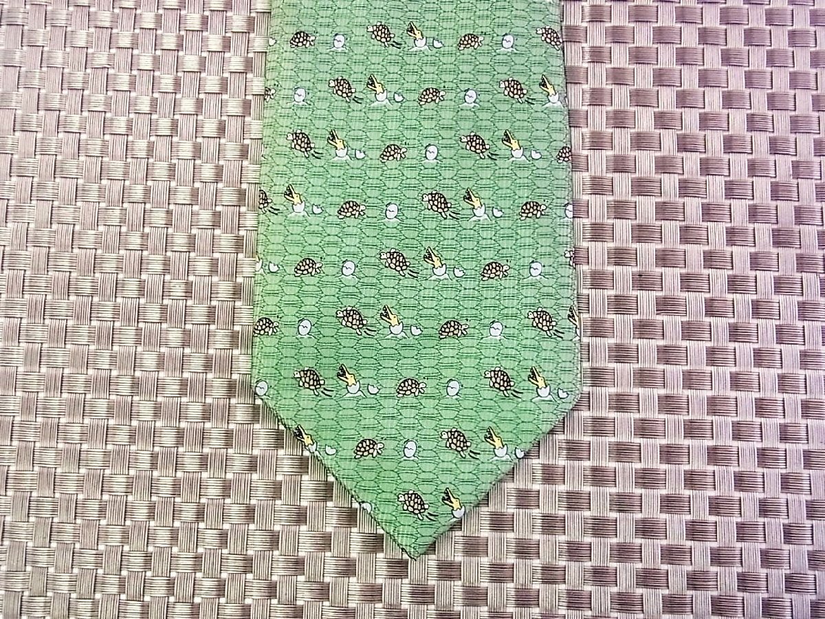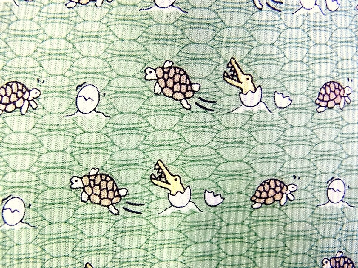 DC01881♪【キャラ柄】シルク100%「亀 カメ ワニ タマゴ」ネクタイ♪