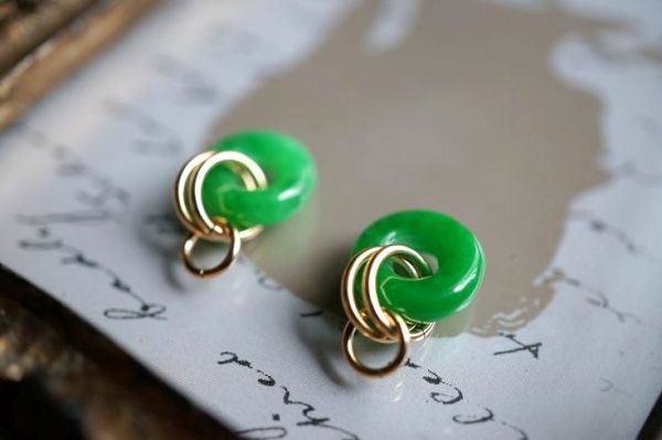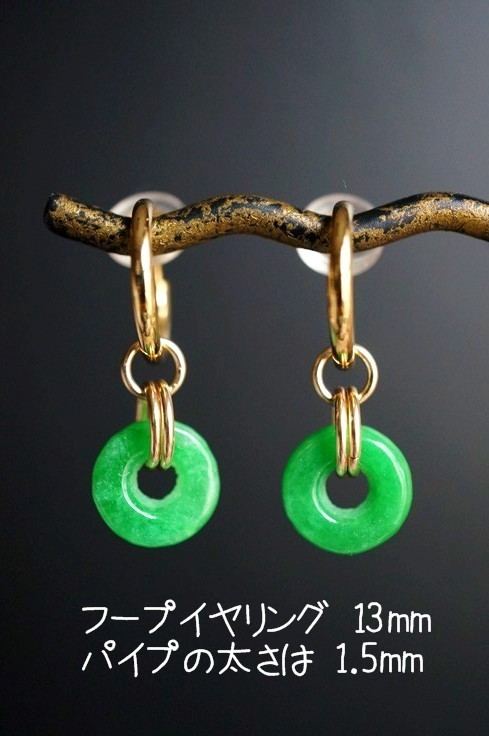 | 素材 1/20 K14GF(14金ゴールドフィルド/GoldFilled) チャーム丸カン 0.8mm線形 5mmを使用しています。 (丸カンのサイズ交換・ご要望は落札前にお問い合わせください。) サイズ デザインの長さは、17mm程度です。(一番上のチャーム丸カン含む) 翡翠 高さ 10ミリ 横 10ミリ 程度 装着パーツは別売りとなっています。 お手持ちの フープピアス・フープイヤリング・ピアリングのチャームとして、 チェーンや革ひも、リボンなどに通してペンダントトップとしてお楽しみいただけます。 パソコン環境やモニターにより、色が多少異なって見えることもあると思います。 あらかじめご了承ください。 個人の趣味で作成していますので、細かい部分が気になる方は入札を お控え下さい。 気をつけて お取り扱いしておりますが、多少の歪みなども有ります。 また、天然石に関しましては、大きさの非対称、面傷なども石の個性として扱っております。 どうぞ ご理解いただいた上でお願いいたします。 特に気になる部分がありましたら事前にお問い合わせ下さい。 落札後の交換・キャンセル・クレームはお受けできませんので ご承知おきください。 上記ご納得頂きました上で、素敵なご縁がありますこと楽しみにして おります。 |