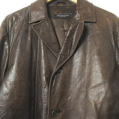 アリストクラティコ ARISTOCRATICO レザージャケット リアルレザー 本革 テーラード 3B イタリア製 茶 ブラウン TG44 メンズ