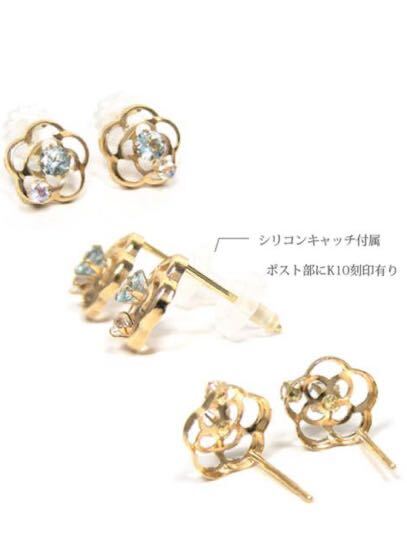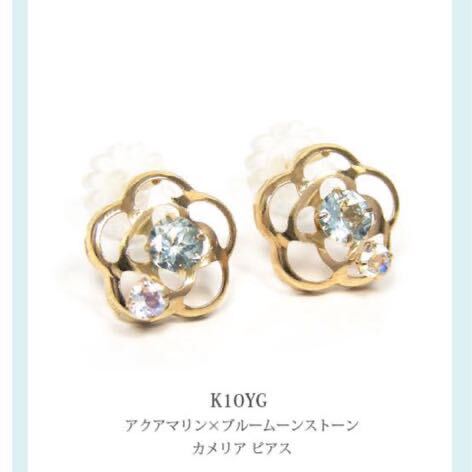 カメリアのアクアマリン、ブルームーンストーンのついたk10のピアス未使用です。