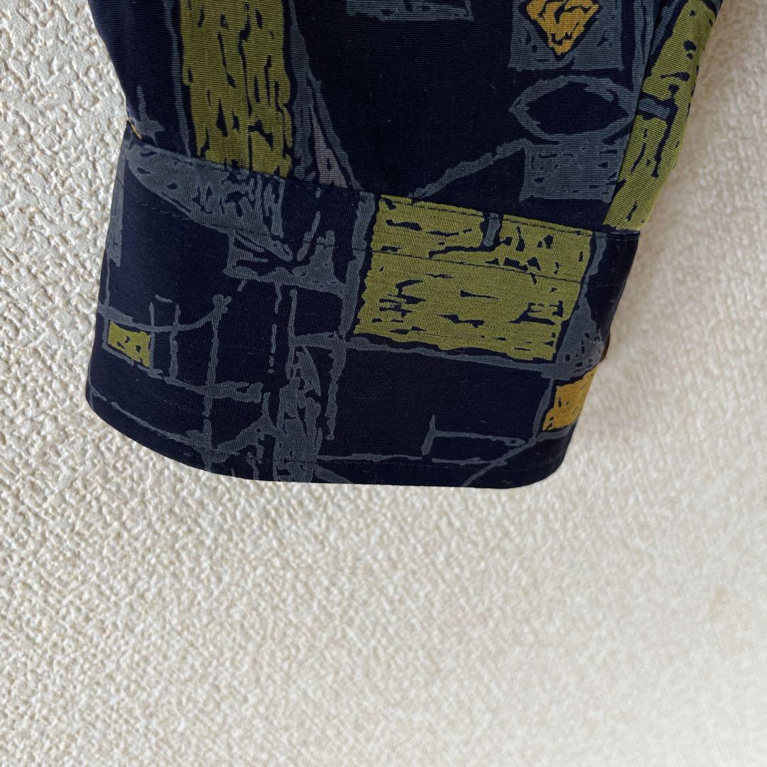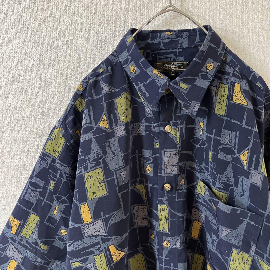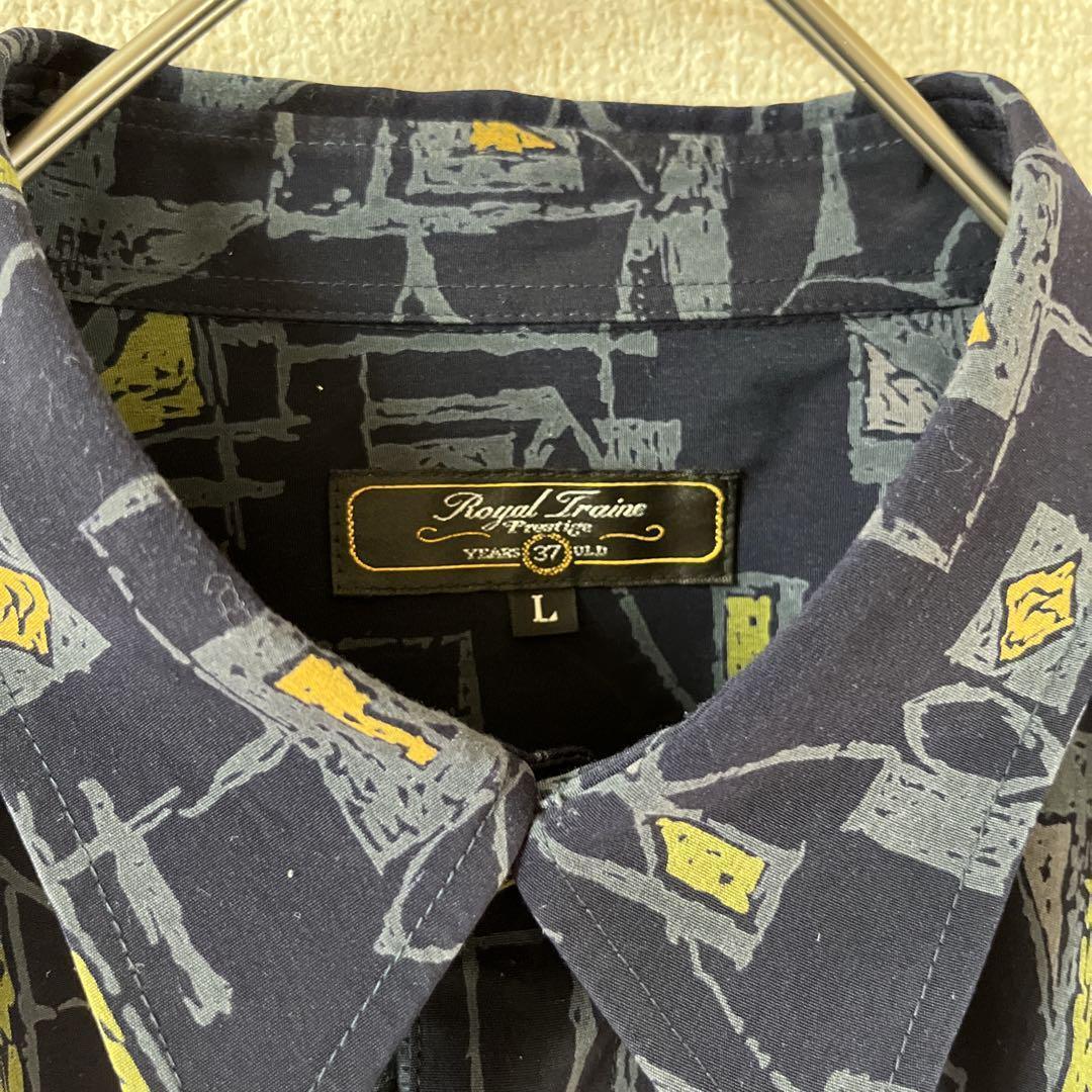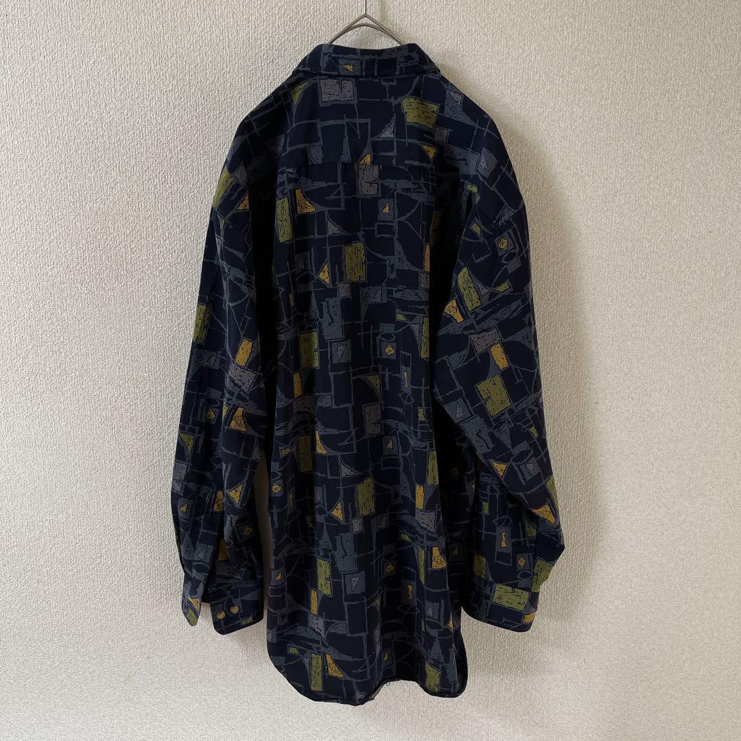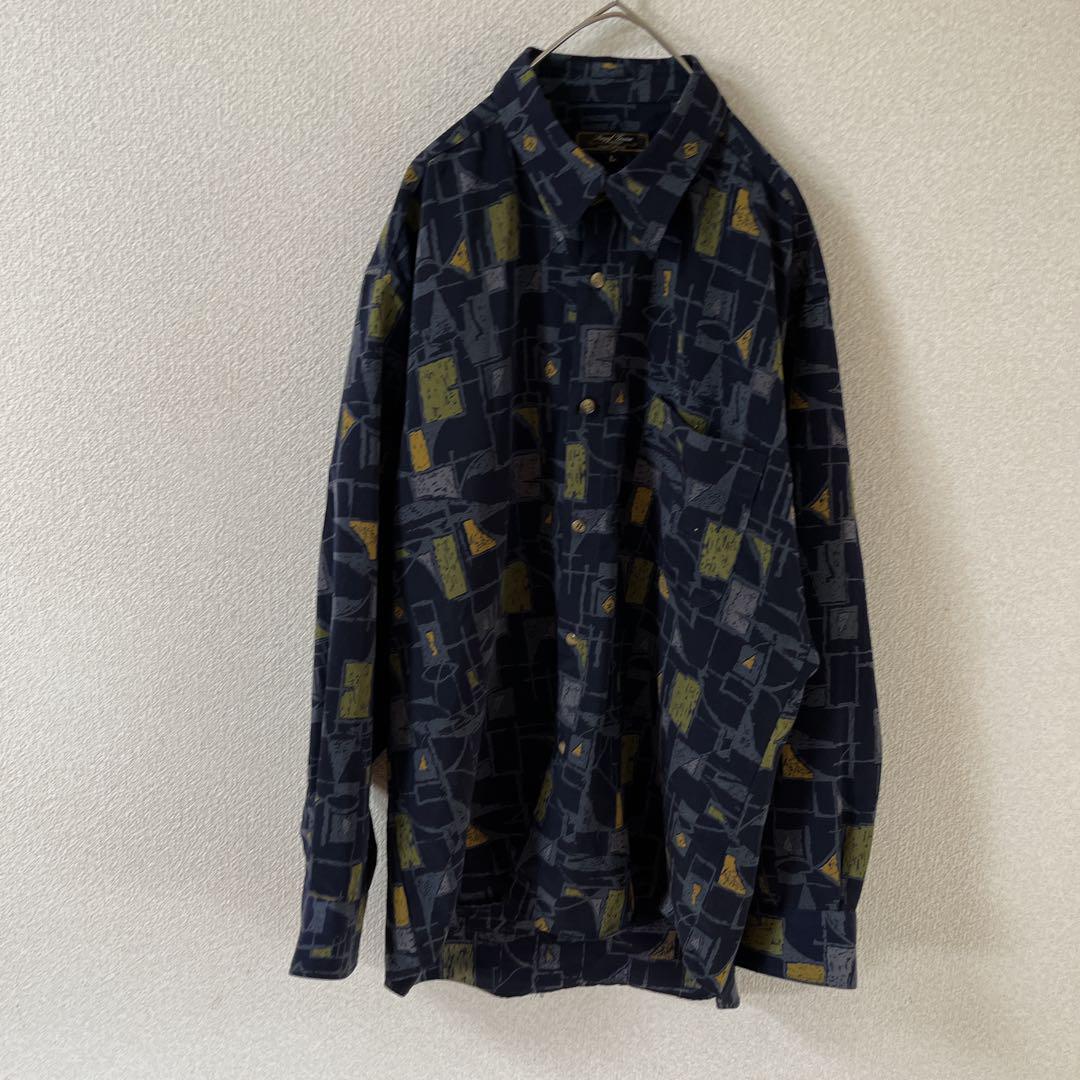 L3 デザイン柄シャツ 長袖 パターン柄 クラシカル サラサラ素材 Lメンズ