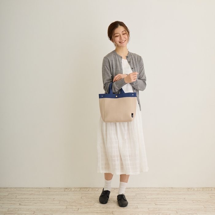 商品説明 | ・・トートバッグのパターンにあわせて、パーツごとに生地を編み立てていきます。 ・製造時の端材が出ず、生地端の処理も不要。 ・無駄の少ない製法でつくられました。 ・必要な分だけパーツを用意し、素材をフル活用しました。 ・ポイントになる異なるカラーで配色したハンドル。 ・やわらかい色合いが癒されます。 ・シンプルなデザインと使いやすさ。 ・ちょっとした用事など身軽にお出かけできる便利サイズ。 ・長財布、スマホ、ポーチなど必要なものをしっかり収納してくれます。 ・用途に合わせてカタチをチェンジジ。 ・中のモノに合わせて、形が変えられるサイドホック付。 ・ホックを付けると、すっきりスタイルに。 ・ホックを外せば、たっぷり収納でき、モノの出し入れがしやすく、中身もパッと確認できます。 ・体に寄り添うやわらかさがありながら、自立するシルエット。 ・荷物が少ない時にも型崩れしにくくなっています。 ・内ポケットと背面にはルーポケット付き。 ・すぐに出したいパスケースやスマホなどの収納にピッタリ。 ・いつでも清潔に。 ・洗濯可能で、衛生的に安心してご利用いただけます。 ・季節を問わず大活躍です。 |