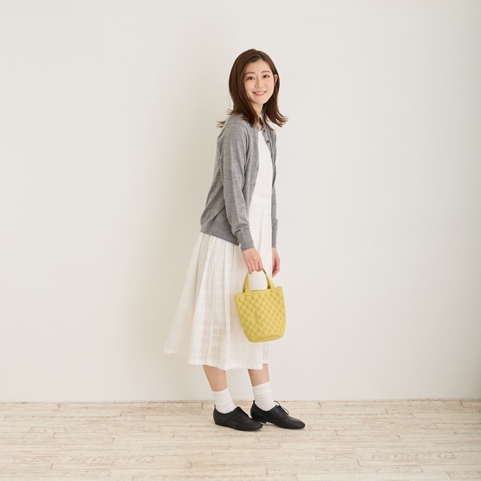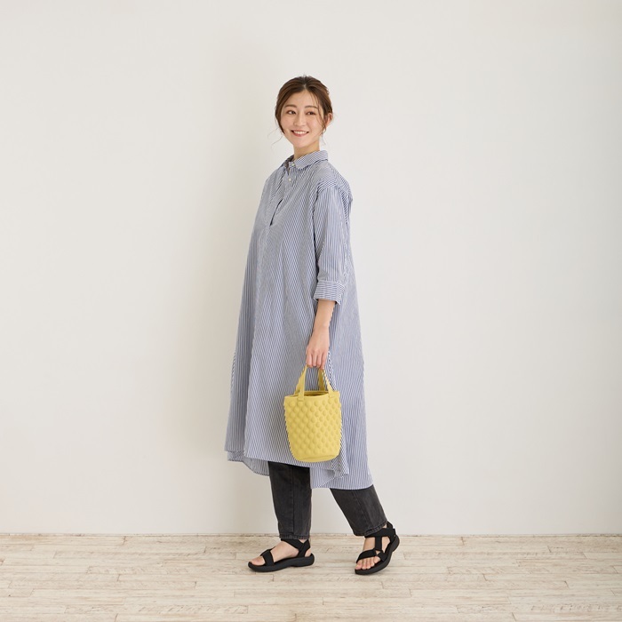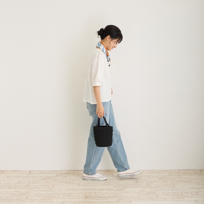 商品説明 | ・・サラリとし手触りは暑い季節にもベタつかず、快適。 ・体に寄り添うやわらかさがありながら、自立するシルエット。 ・軽量でちょっとしたお出かけにピッタリ。 ・小さいながらも必要なものはしっかり収納。 ・お財布、エコバッグ、ボトルなど、見た目以上にたっぷり収納できます。 ・サイドのルーポケットには、キーリングが付いています。 ・カギをなくす心配がなく便利です。 ・バッグとしてはもちろん、インテリアとしても… ・ざっくりとモノを入れて、バスケットの様に使用ができます。 ・揃えて飾っても素敵です。 ・ポコッポコッと押してみても!? 感触が気持ちいい楽しいデザインです。 ・いつでも清潔に。 ・洗濯可能で、衛生的に安心してご利用いただけます。 |