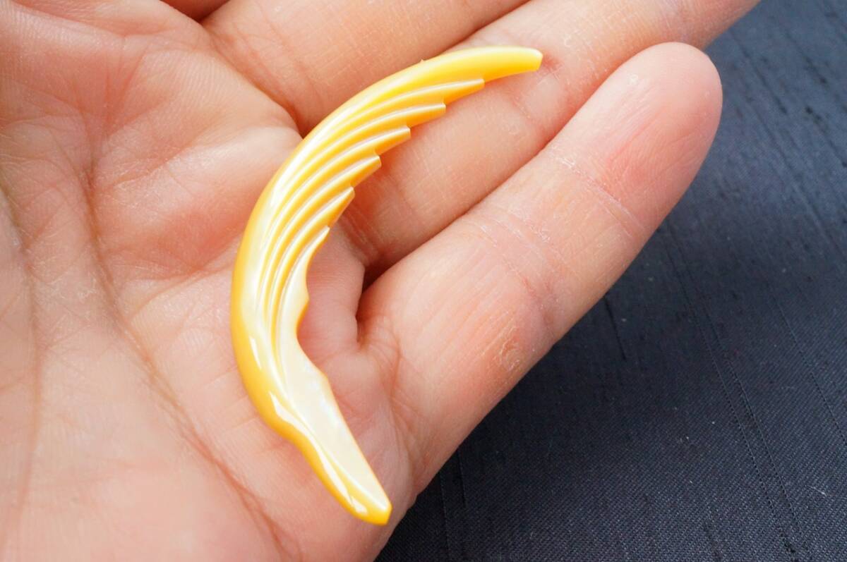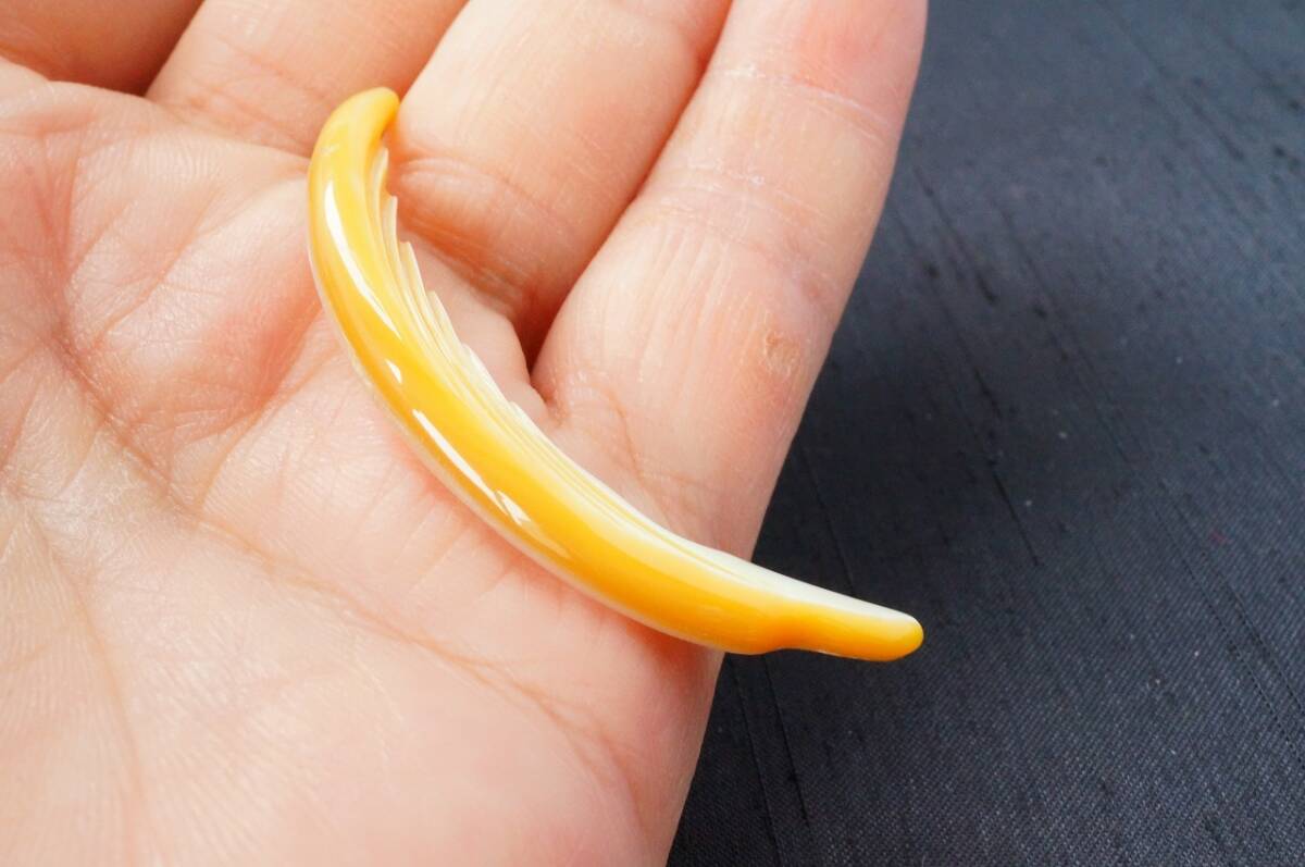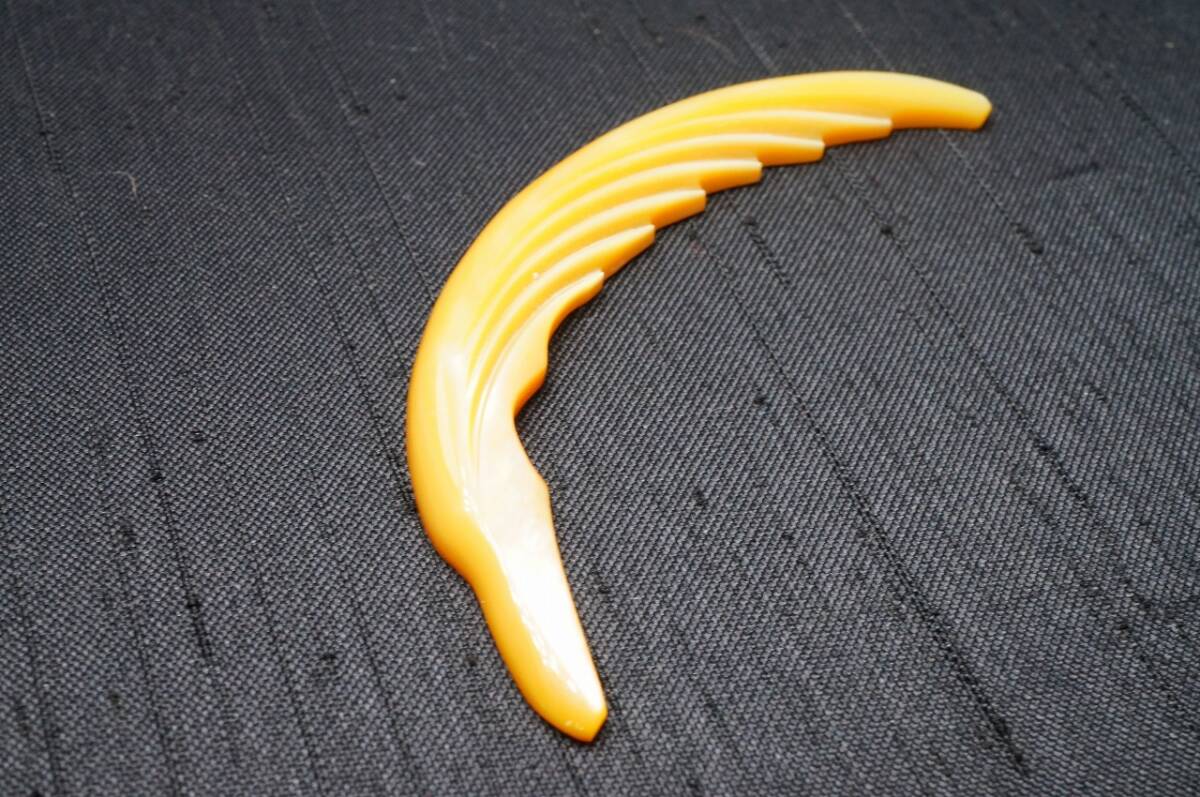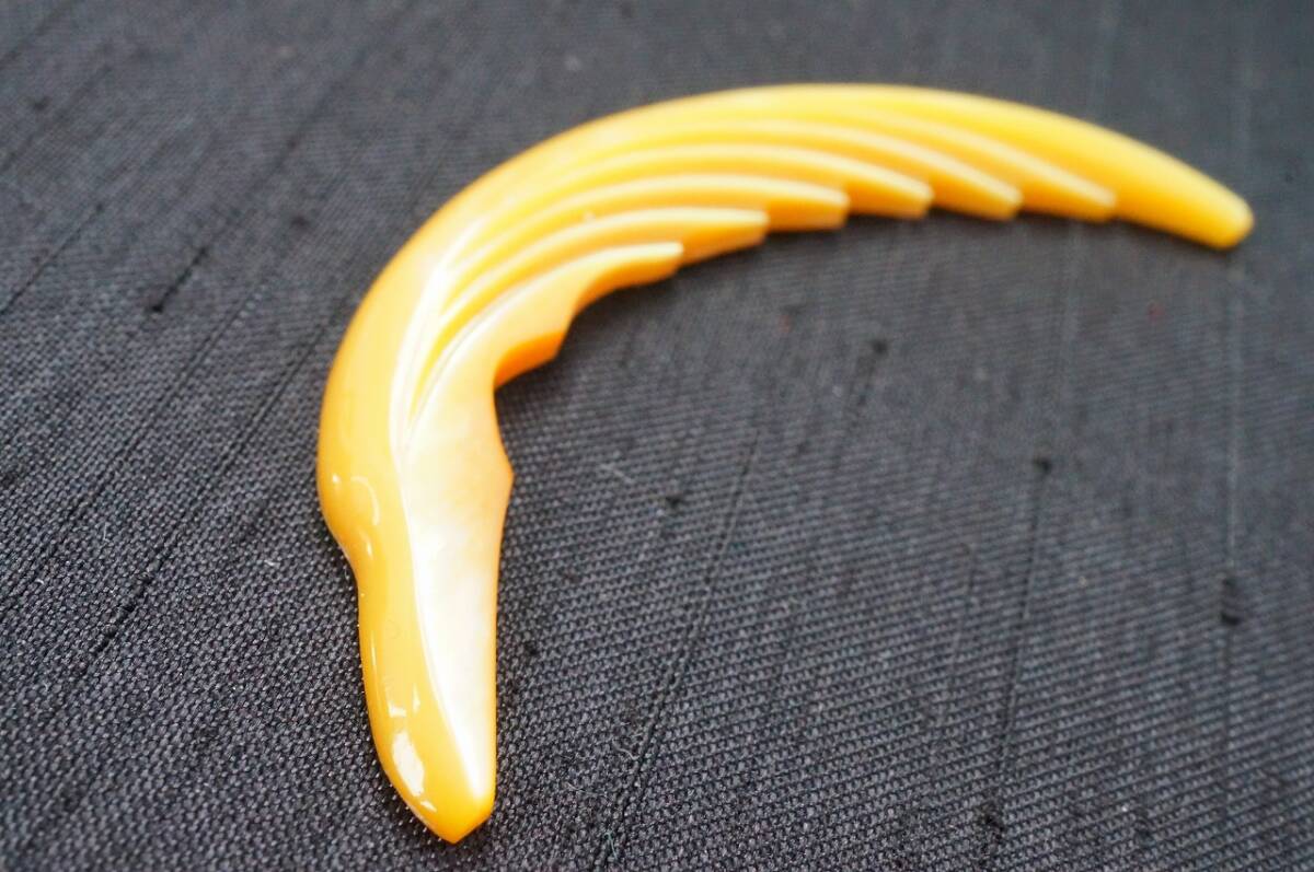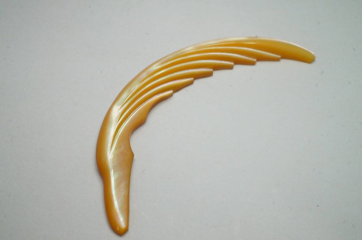 【即決特別価格!極上品】希少!35年前の未使用在庫!上質黄蝶貝「羽根」彫刻ルース甲府研磨加工 | |||||||||||