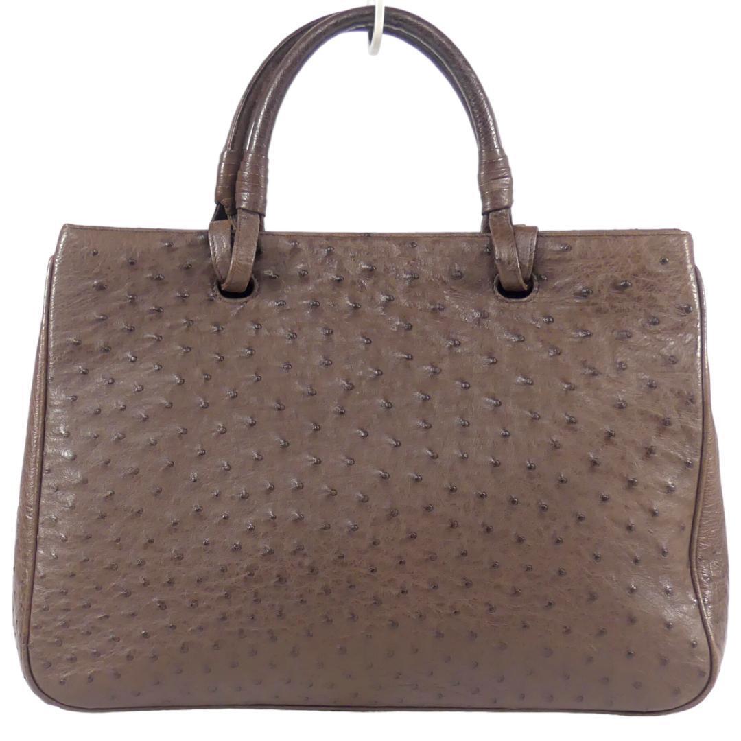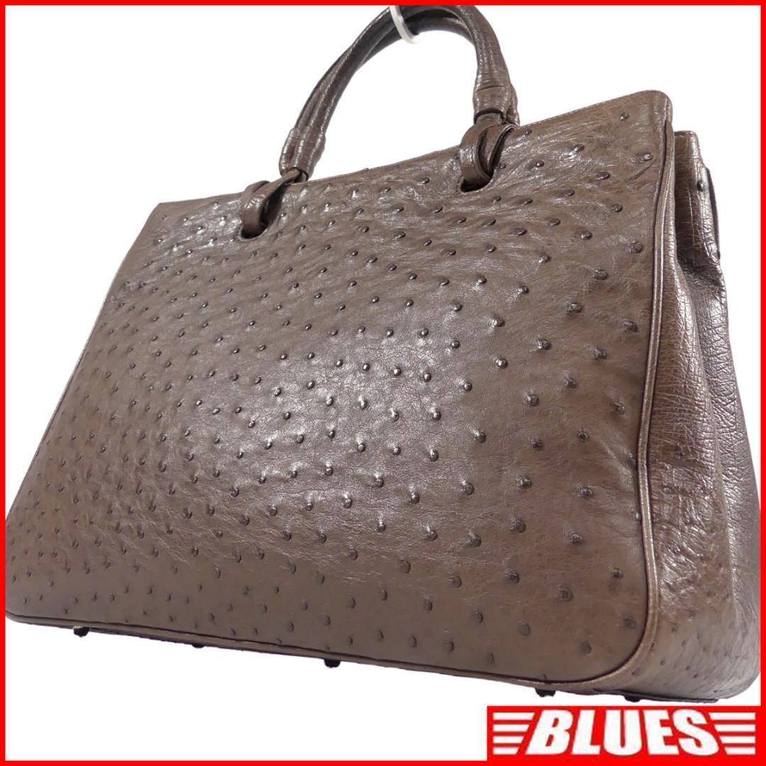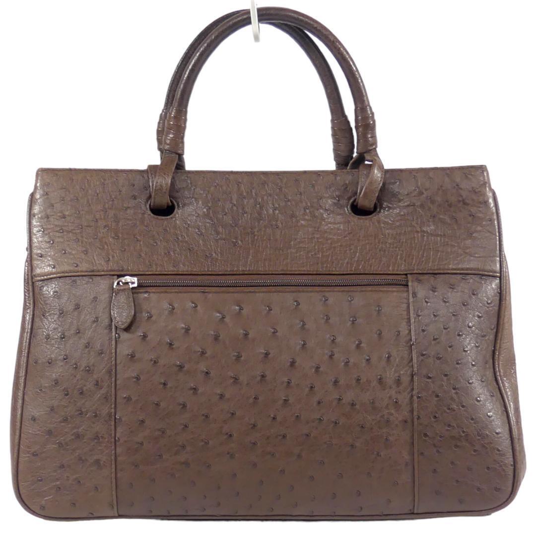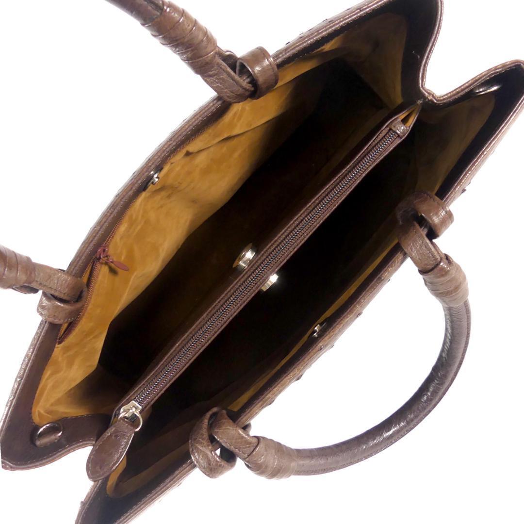 即決★N.B.★オールレザーハンドバッグ 茶 オーストリッチ 本革 手提げバッグ 本皮 2way ショルダー 旅行 カバン 鞄