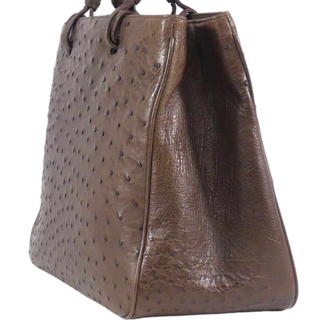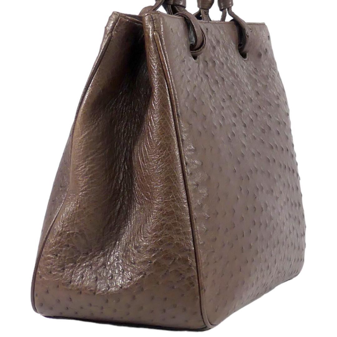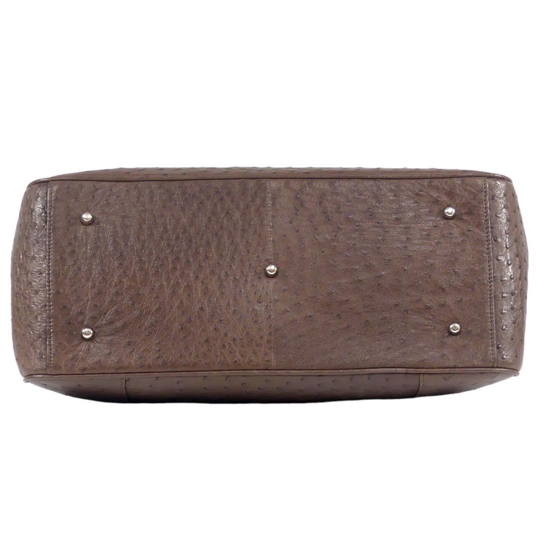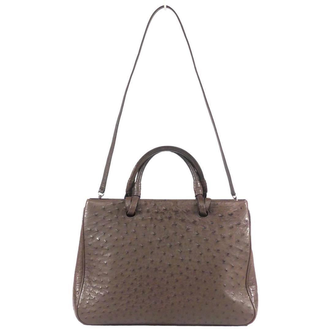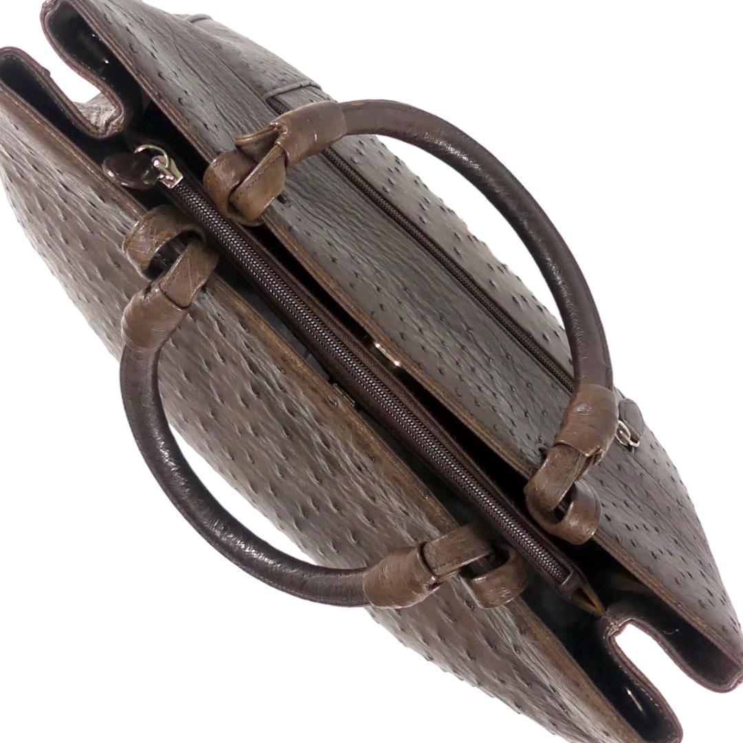 即決★N.B.★オールレザーハンドバッグ 茶 オーストリッチ 本革 手提げバッグ 本皮 2way ショルダー 旅行 カバン 鞄