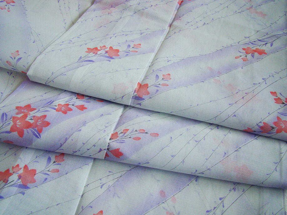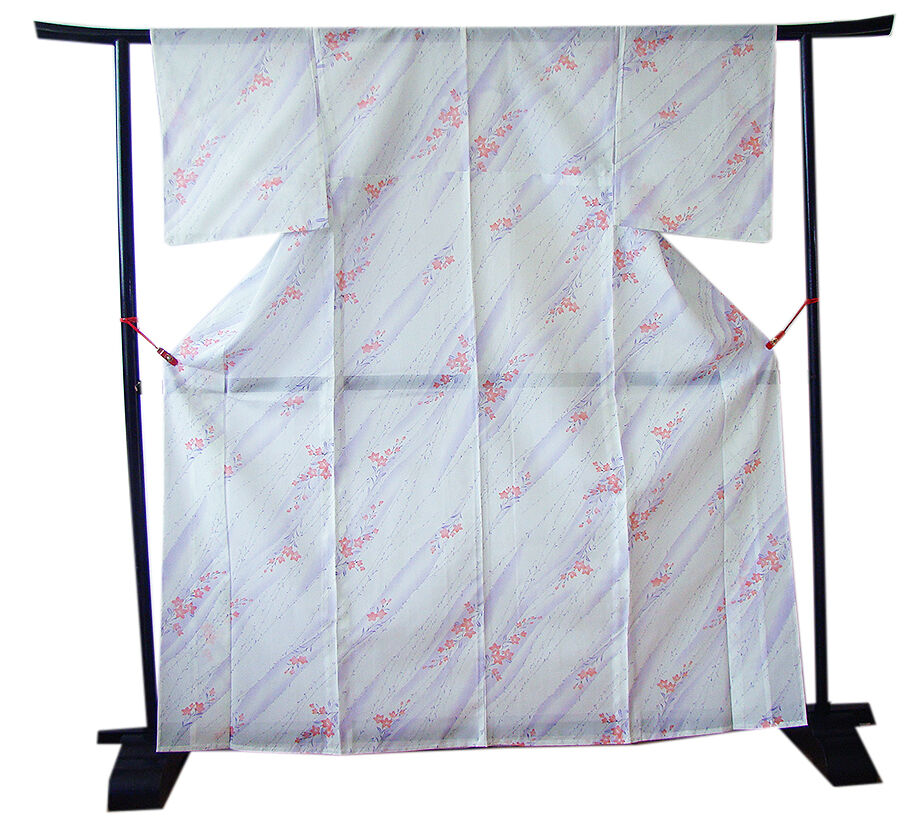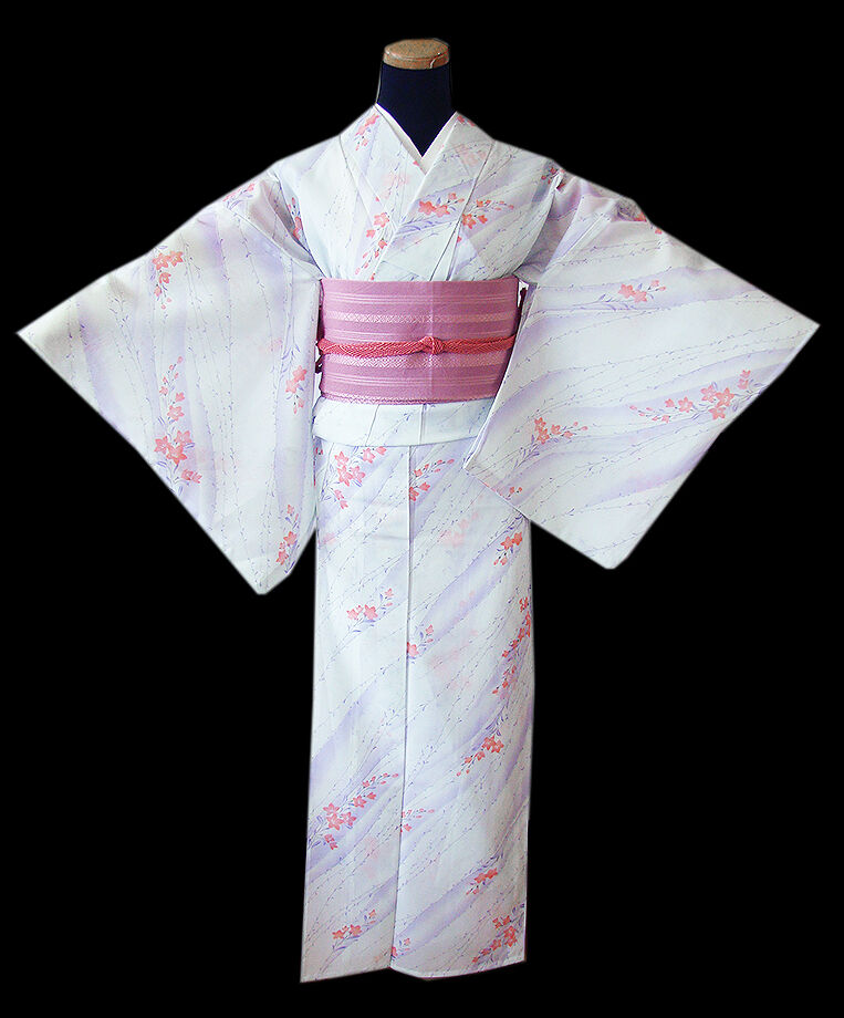 | 商品説明 | こちらのお品は夏物でございますので、7月~8月にお召頂ければと思います。 「絽」と言えば、紗と双璧を成す夏のお着物の生地で、 その最大の魅力は絶妙の透かし加減でございます。 清涼感溢れる地の風を通すしなやかさは夏に着物を着るという贅沢を 快適に愉しませてくれる事でしょう。 着物には、大きく分けて「袷(あわせ)の着物」と「単衣(ひとえ)の着物」と「夏着物」があります。 反物(表地)を着物に仕立てるときに、裏地類をつけるものを袷の着物、 つけないものを単衣の着物と呼び、胴裏や八掛といった裏地がつかない一枚ものの着物です。 また裏地がないため、座る時などにヒップのラインが目立たないよう、 居敷当て(いしきあて)の生地をつけることもあります。 居敷当ては付いておりません。 しなやかな手触りの滑らかなさらっとした肌触りは絹と間違ってしまいそうな 洗える高級ポリエステルの「絽」の生地で涼やかな風合いを醸しております。 淡い藍白色地に青藤色ぼかしに花草柄の染柄が上品な着物姿を演出しております。 帯はポリエステルの八寸かがりなごや帯(全通柄)でしなやかで扱い易く〆易く、 長春色地に献上柄の織柄が粋な帯姿を奏でております。 帯〆は平組、銀朱色地の組紐となっております。 |