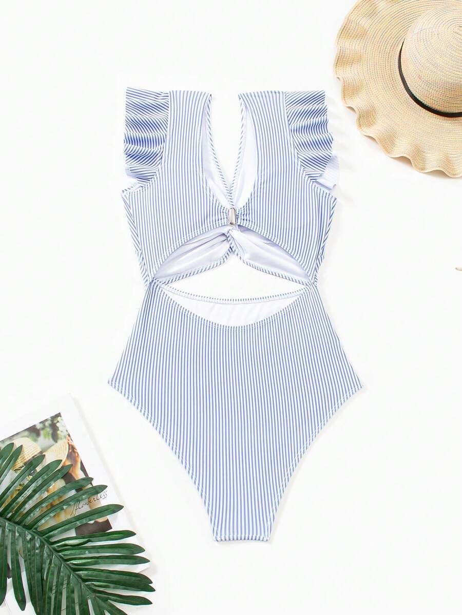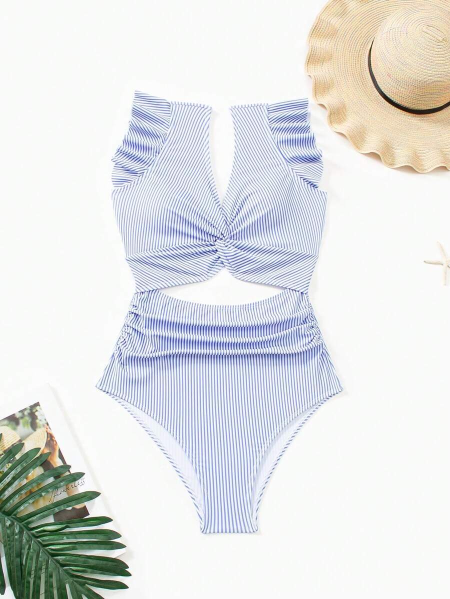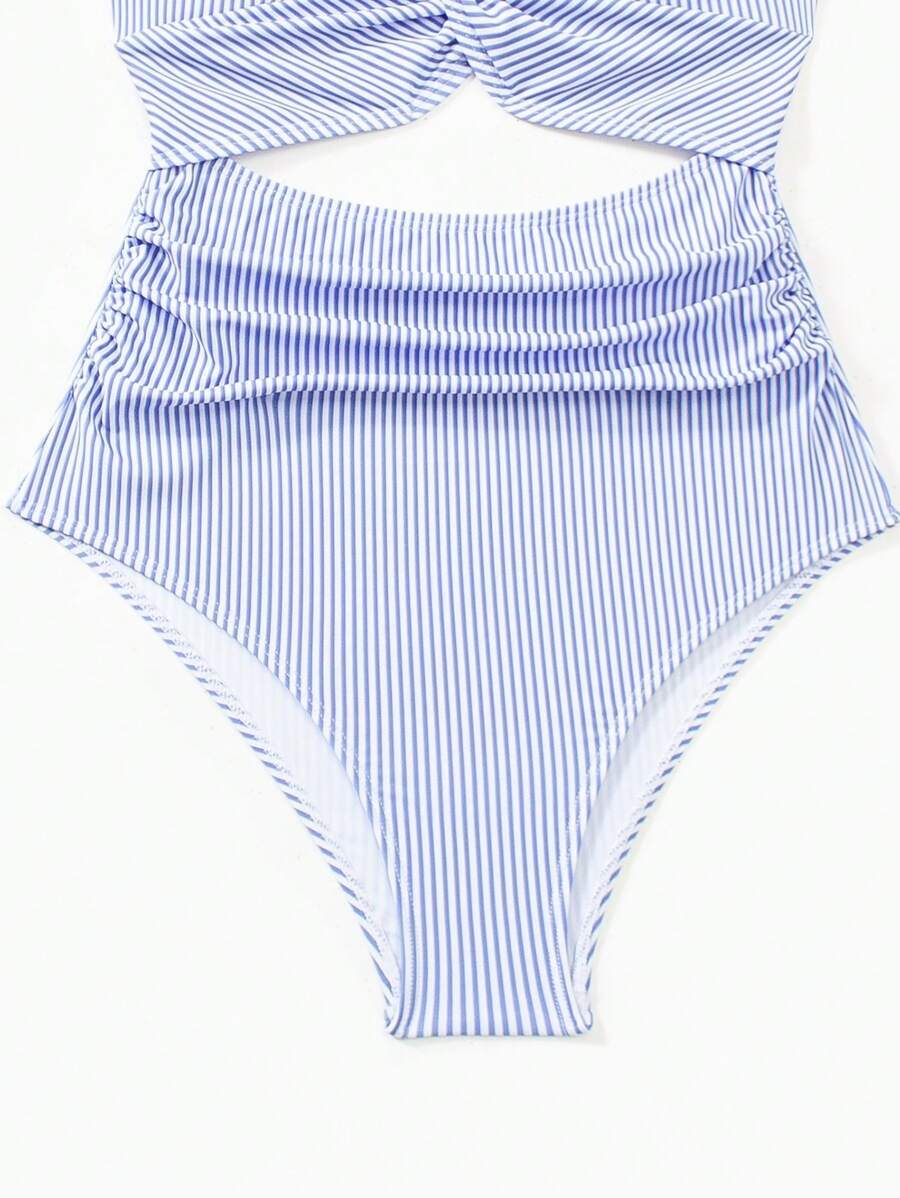 レディース 水着 ワンピース 夏のビーチ用水着 女性用 ストライプ柄 ツイスト カットアウト ワンピーススイムウェア