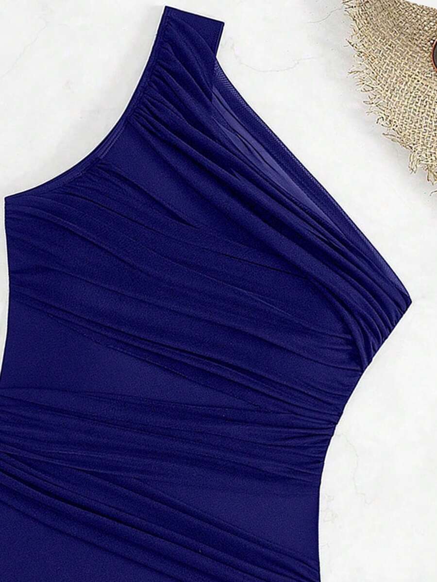 レディース 水着 ワンピース 女性用 ソリッドワンショルダー プリーツ ワンピース水着、に最適、スリムフィット