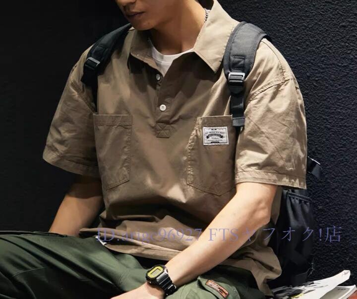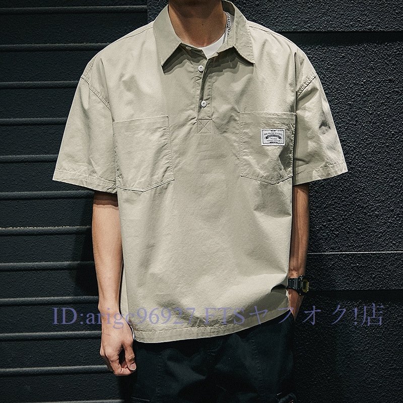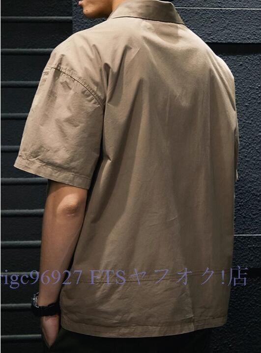 B0817☆新品お色選択可 ワークシャツ メンズ ゆったり オーバーシャツ 半袖 アメカジ ポケット シンプル ベーシック ベージュM- 2XL