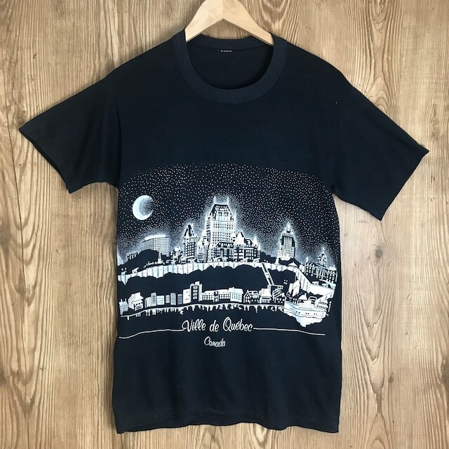 80s VINTAGE CANADA 街 アート プリント Tシャツ シングルステッチ メンズ Sサイズ位 ブラック 黒 80年代 ヴィンテージ ビンテージ アメカジ 古着 e24052513