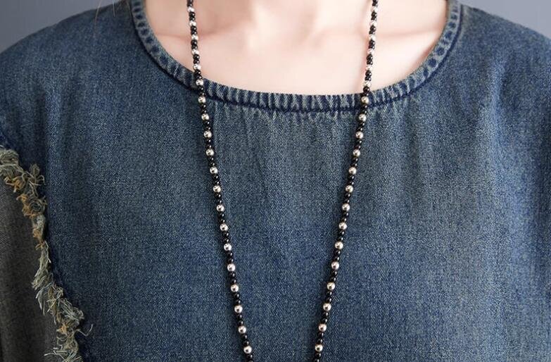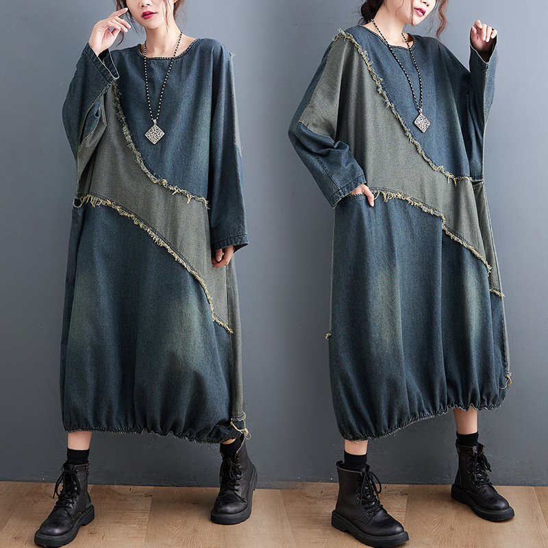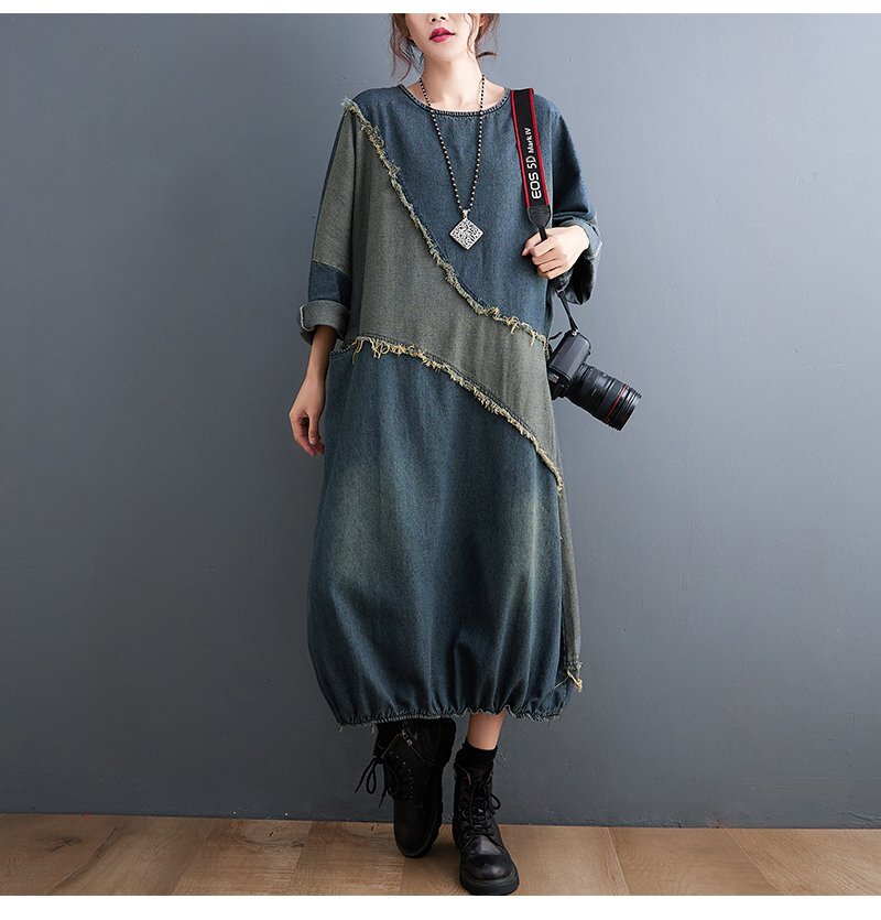 B0361☆新品ロング ワンピース チュニック 大人可愛 ゆったり デニム ジーンズ