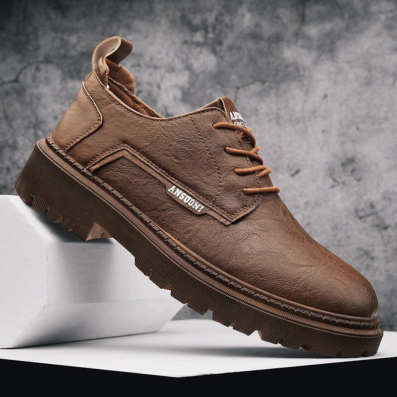 B0481お色選択可ライダースメンズシューズ シューズ マーティンブーツ バイクブーツ PU革厚底身長アップ幅広 カジュアルゆったりブラウン