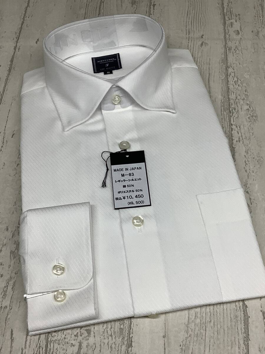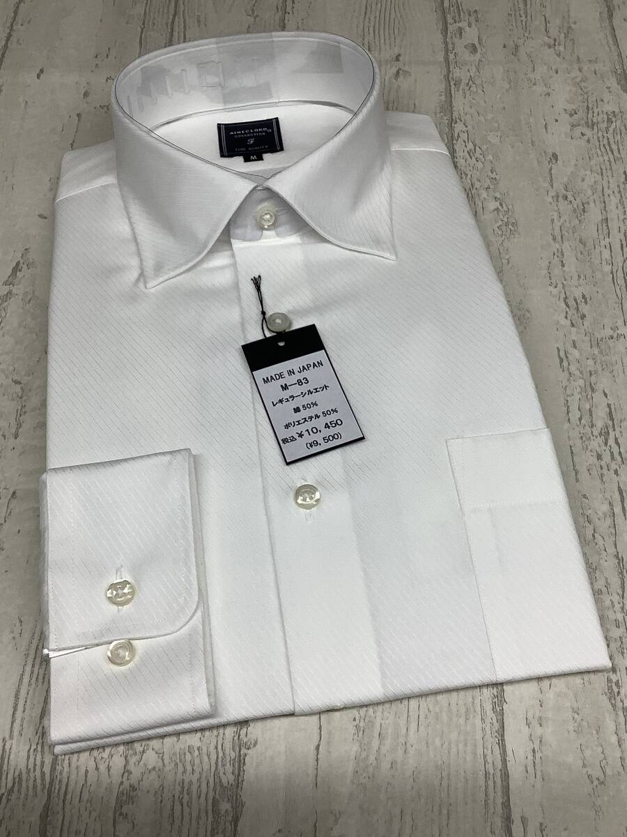 40-83★Mサイズ 新品 白ドビー柄 ワイドカッターシャツ スナップダウン 日本製 高級 形態安定加工 ドレスシャツ  綿ポリ