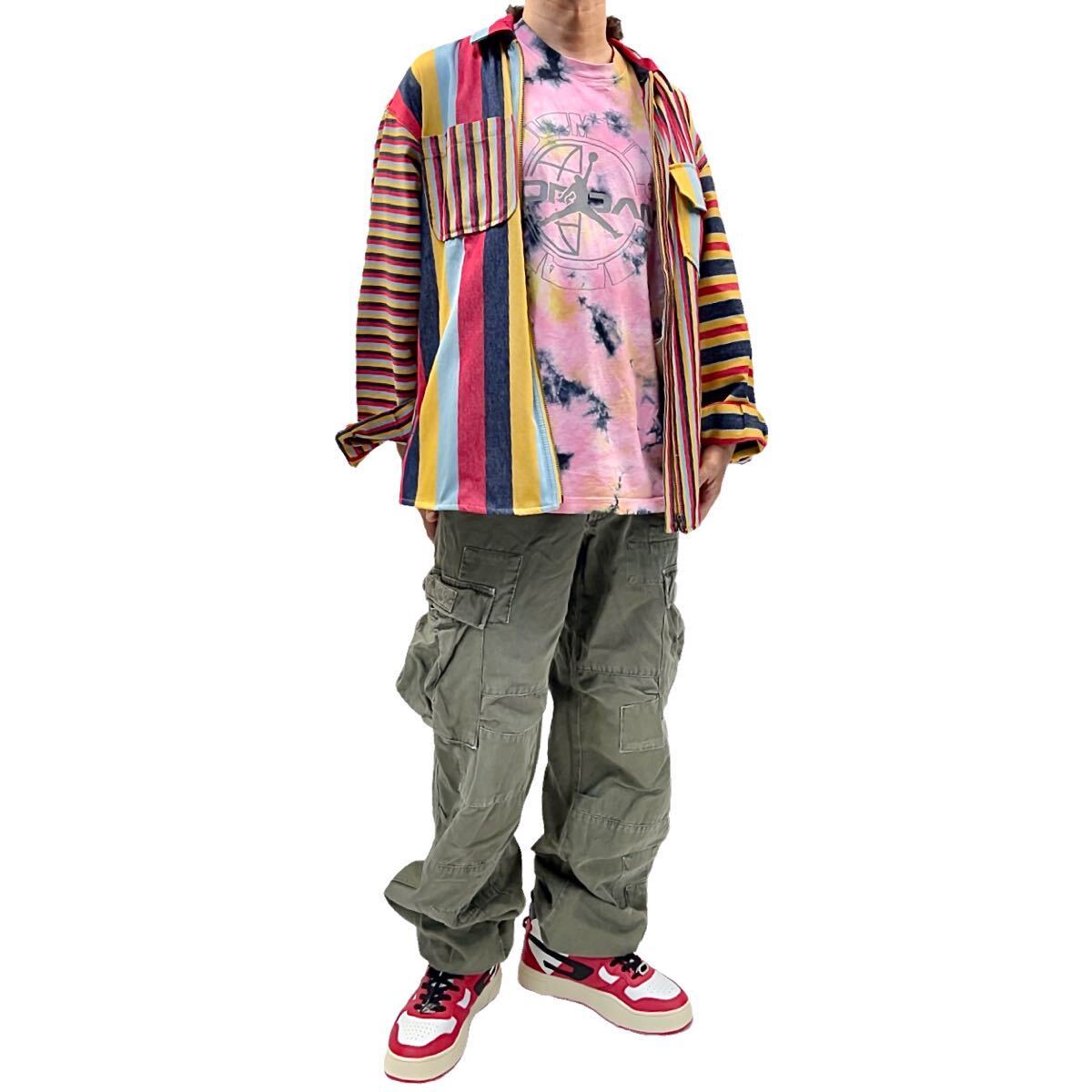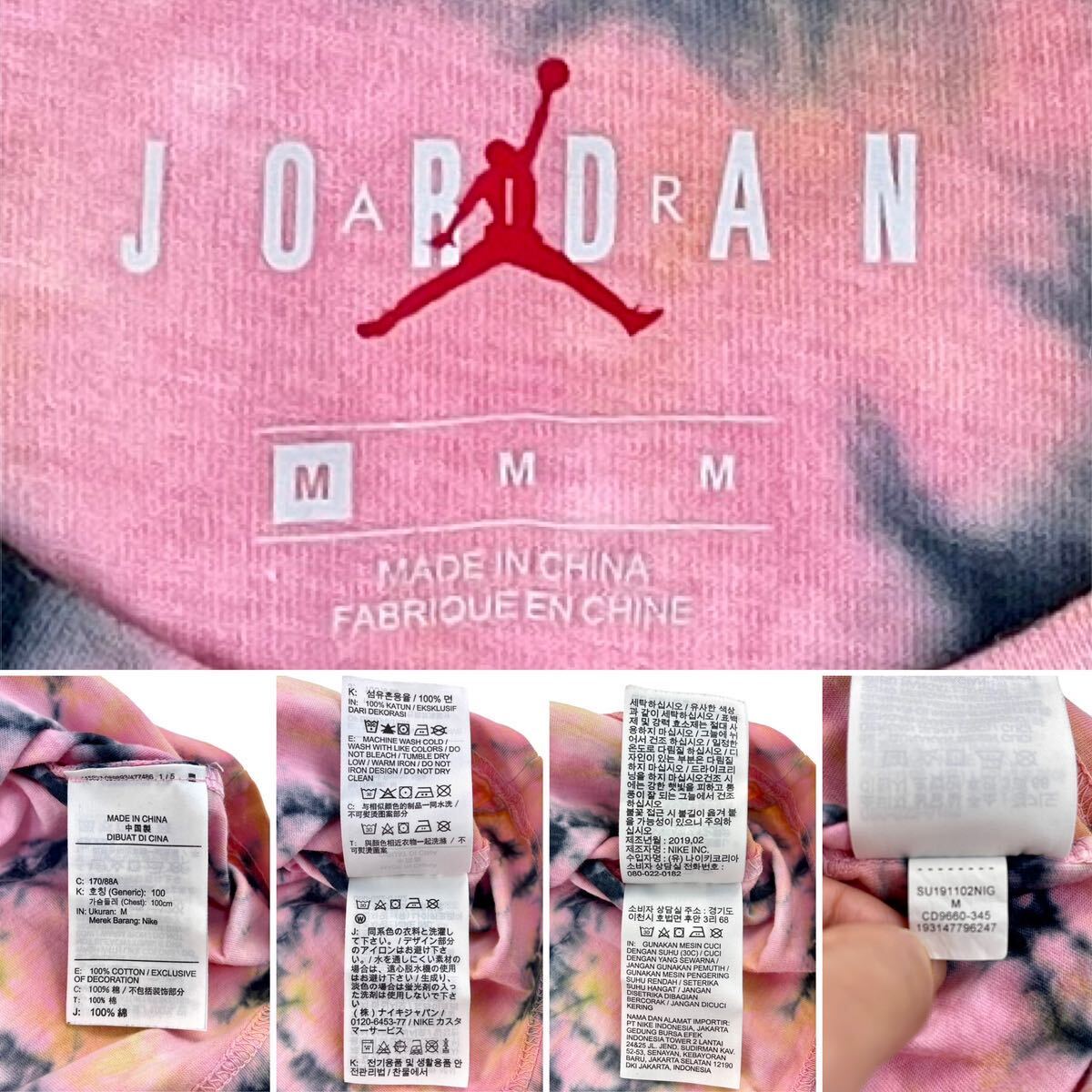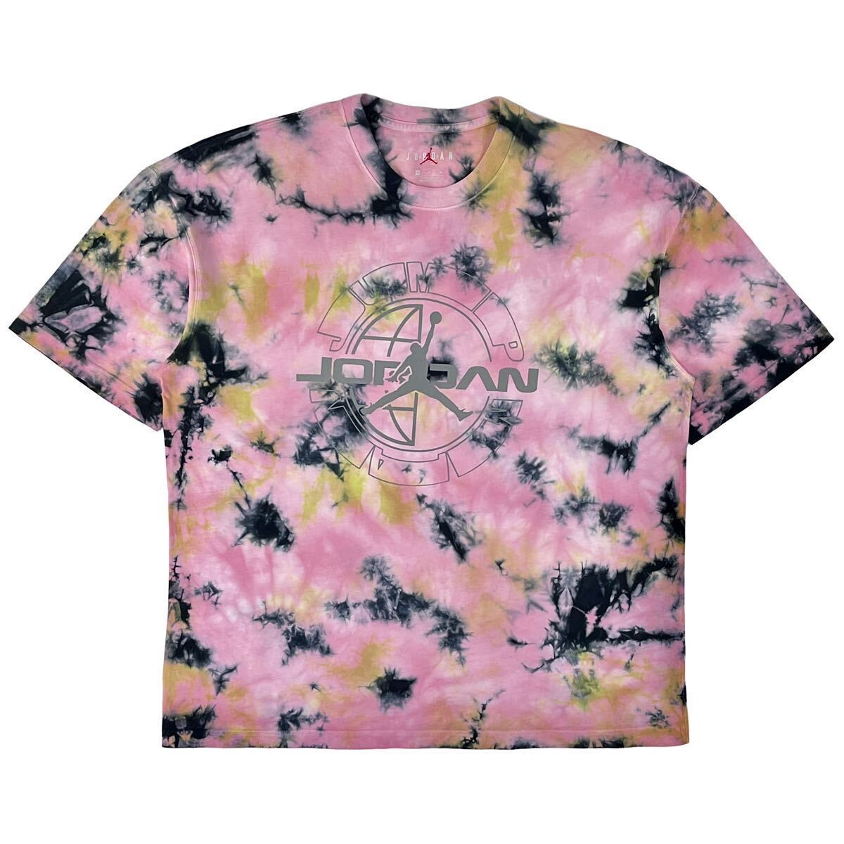 インパクトのあるピンクベースのタイダイ染めマルチカラーボディにしっくり馴染んだジャンプマンロゴはリフレクタープリントになっていて、光を当てる事によって反射して浮き出るカッコいいデザイン。