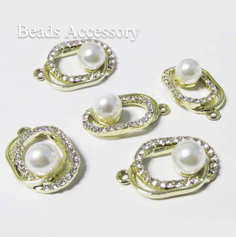 商品名:BA-0740 金色オーバルにパールとダイヤモンド 25×16mm 4個