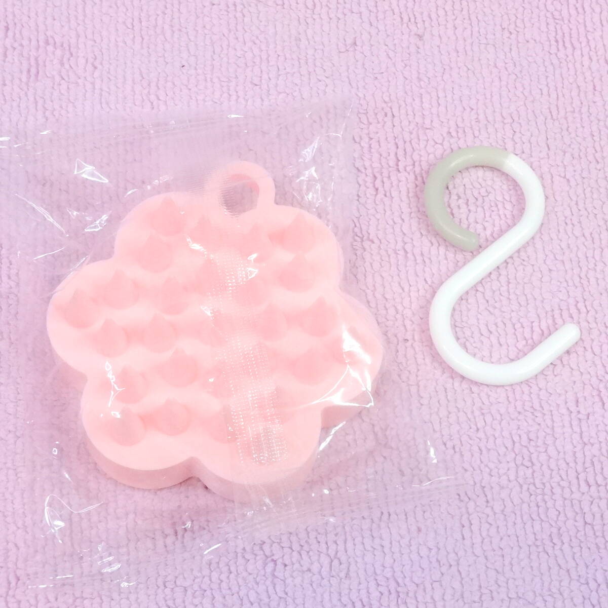 シリコンシャンプーブラシ花の形 ピンク フック付き