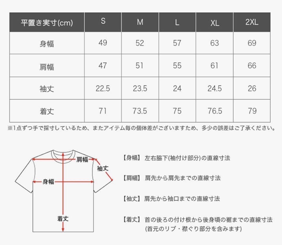お手持ちのTシャツと記載の大きさ(cm)を比べてご自身で判断ください。