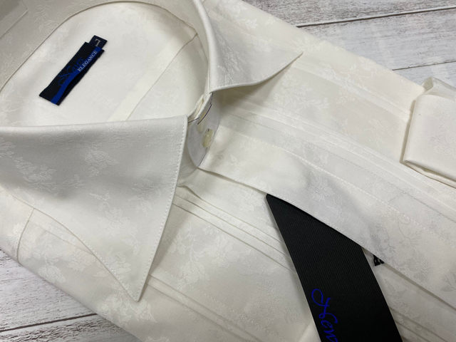 【1949】NWL631-01■L(41-84)■長袖ドレスシャツ■News elegance 綿100% ワイシャツ ワイドカラー 日本製 ドゥエボットーニ 花柄