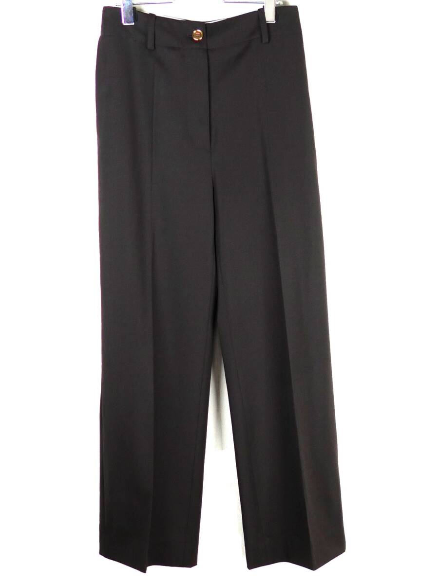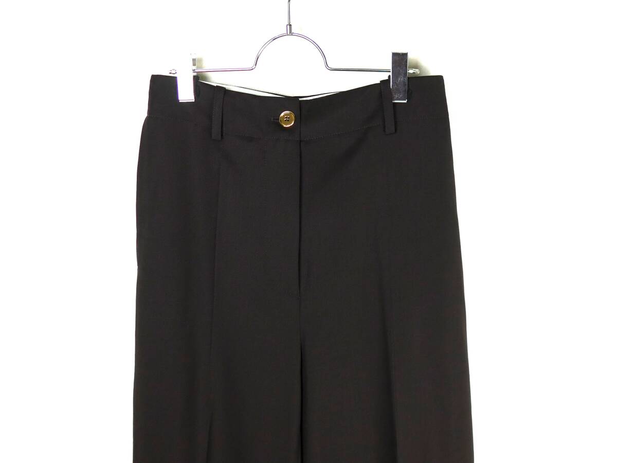 PATOU パトゥ 23AW/24SS 定番 バージンウール アイコニック ロングパンツ36 ストレッチ ダークブラウン系 金ボタン