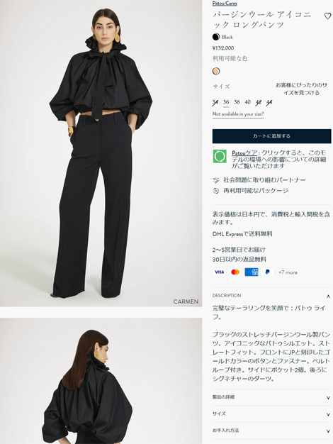 パトゥの定番人気アイテム、バージンウールアイコニックロングパンツ。