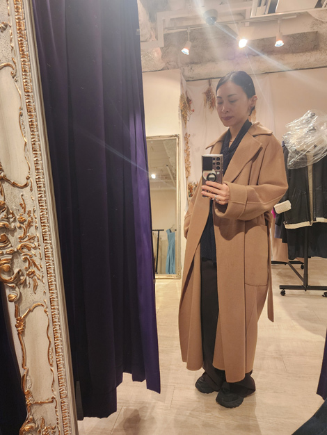ロングラインシルエットとクチュールのディテール。