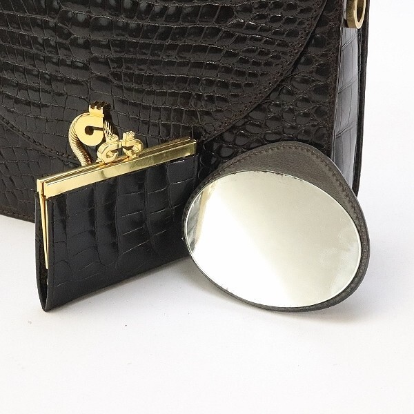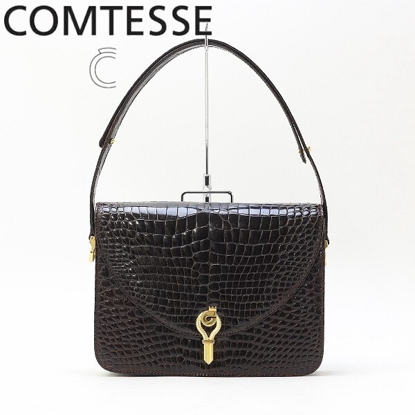 ◆COMTESSE コンテス IRV認定 クロコダイルレザー ゴールド金具 肩掛け ショルダー バッグ ダークブラウン | |