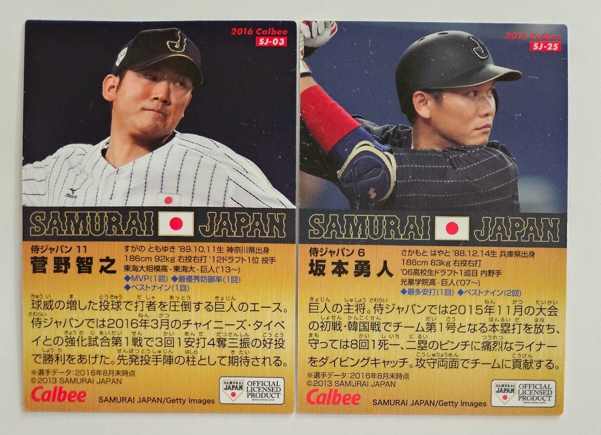 2016年カルビー侍ジャパン 坂本勇人、菅野智之 巨人、ジャイアンツ