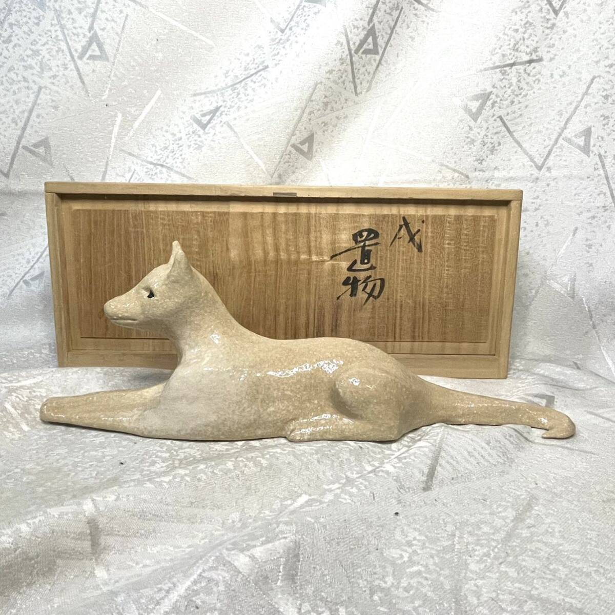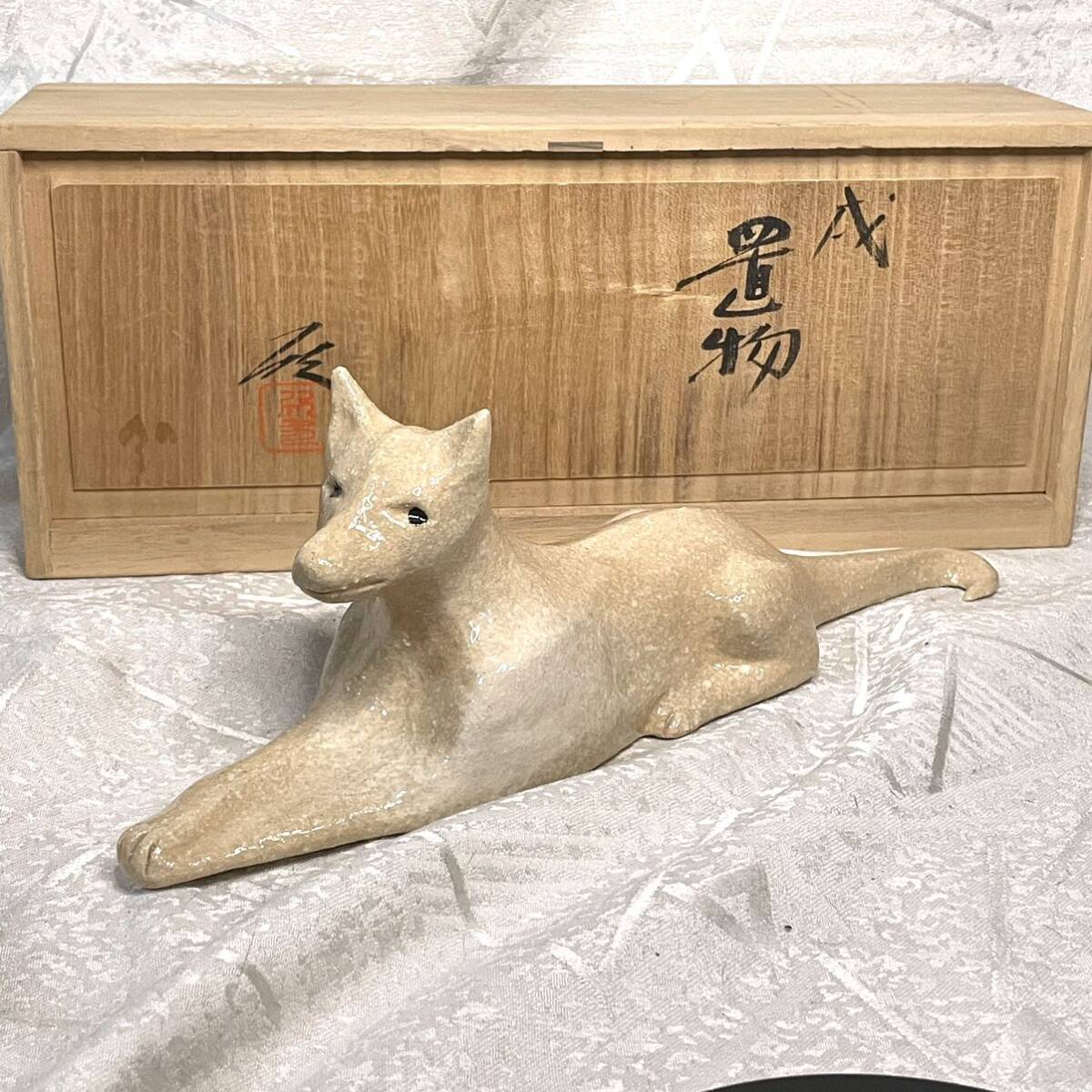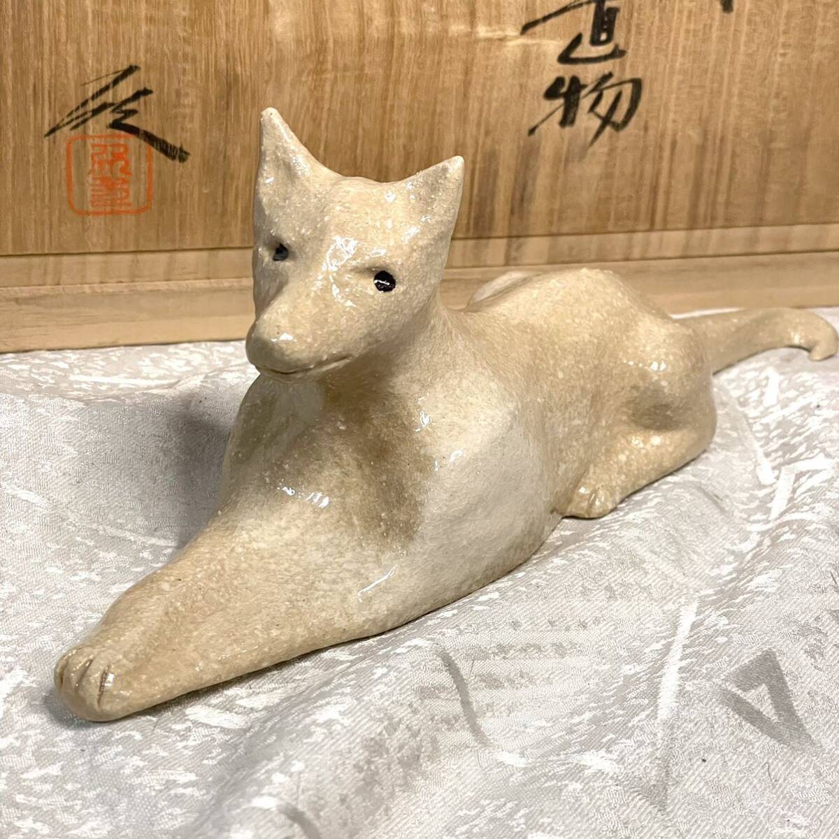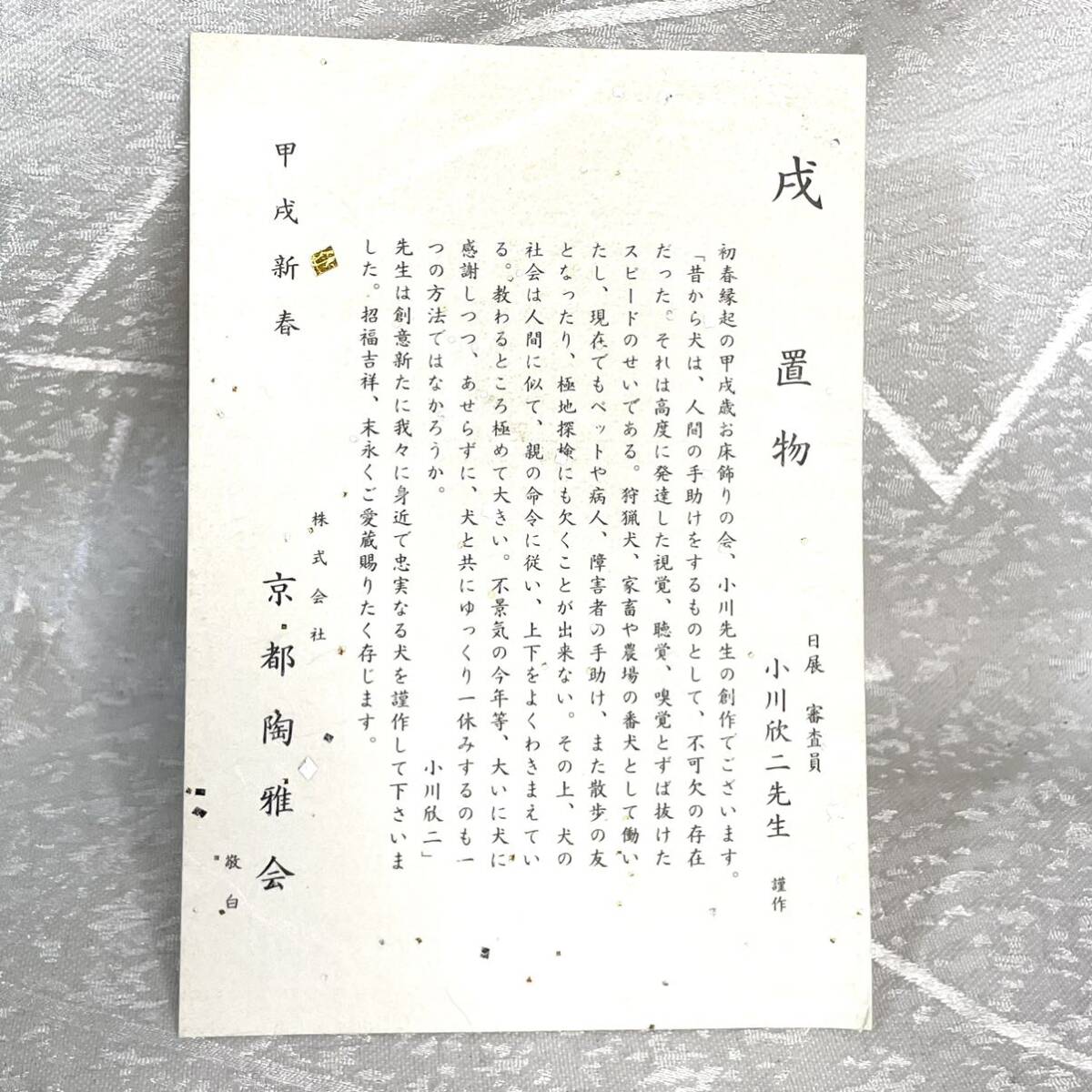 美品【小川欣二 謹作】戌 置物 犬 干支 京焼 床の間飾り 玄関飾り インテリア 縁起物 ★共箱、共布あり