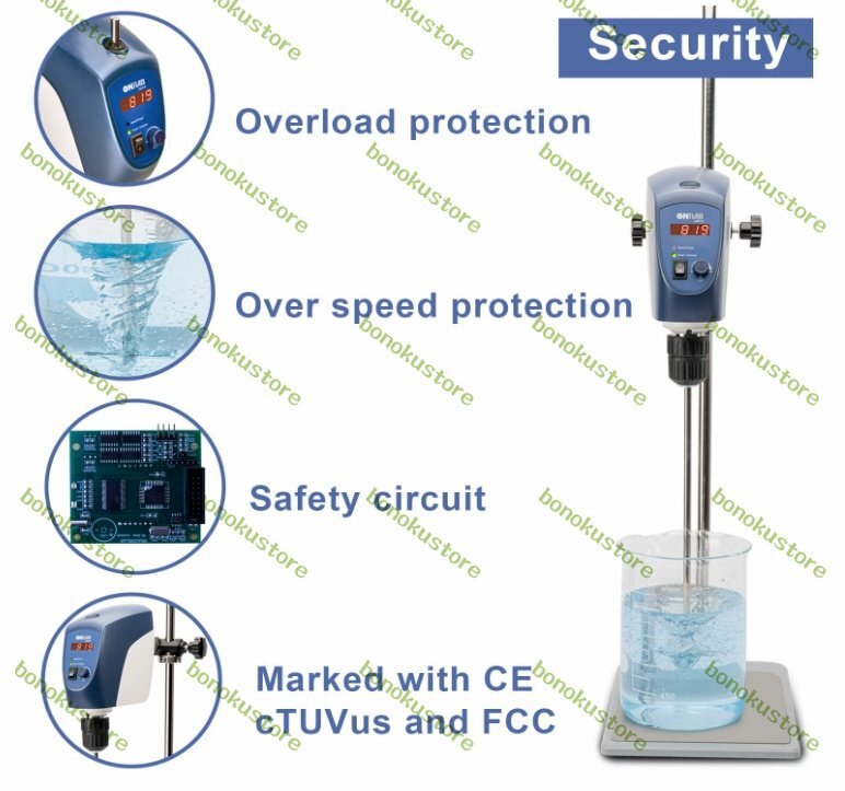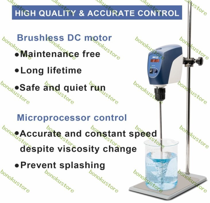 正確なデジタル制御 マイクロプロセッサ制御により、サンプルの粘度変化にもかかわらず正確かつ一定の速度が可能になり、水しぶきを防ぎ、LEDは速度を表示します。