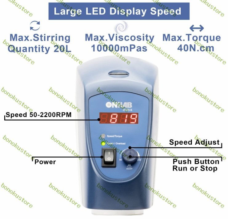 電動オーバーヘッド撹拌機 LEDデジタルオーバーヘッド攪拌機 攪拌棒付き 20L 10000mPas 50~2200RPM アルミニウム合金