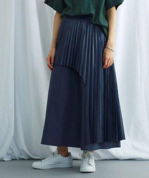 新品 定価25300円 ジェット ニューヨーク アシンメトリー プリーツ スカート 紺 ネイビー 2 レディース M S JET NEWYORK デザイン 90%off