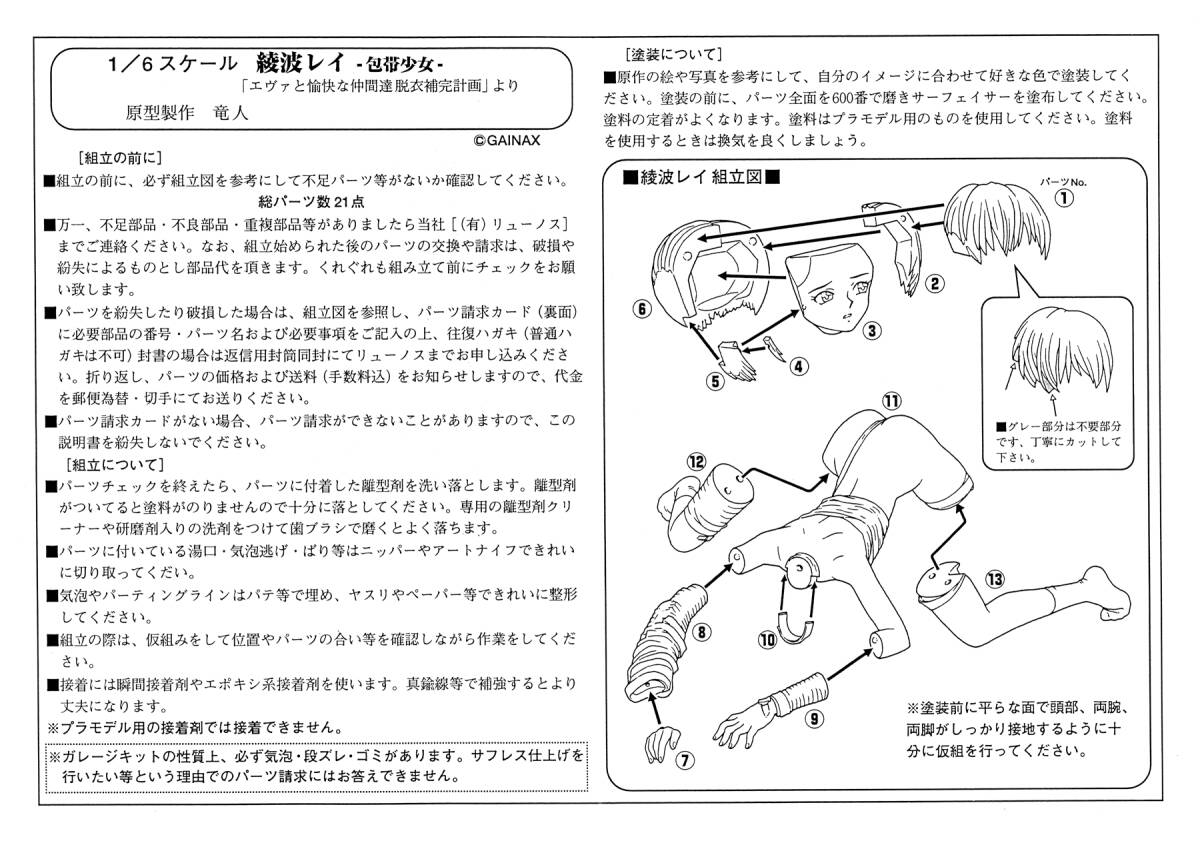 竜人 原型 1/6 綾波レイ 包帯少女 ガイナックス エヴァンゲリオン ワンフェス ガレージキット ガレキ  レジン