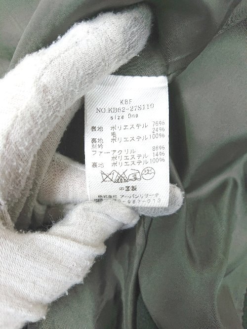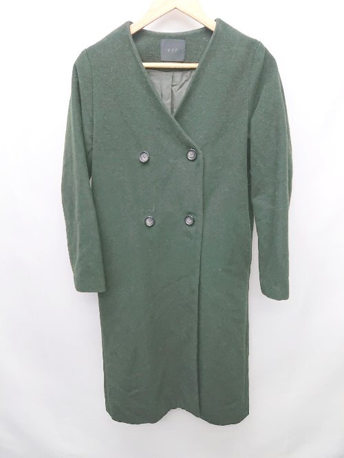 ◇ KBF ケービーエフ ノーカラー バックスリット シンプル 長袖 コート サイズOne ダークグリーン系 レディース P
