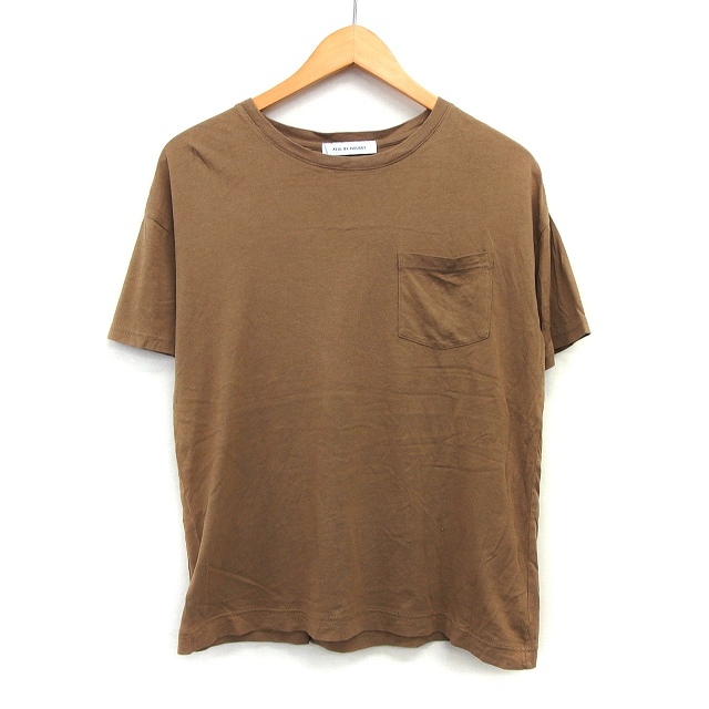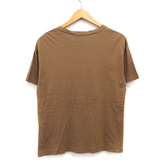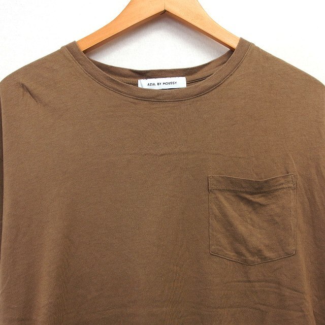 アズールバイマウジー AZUL by moussy Tシャツ カットソー 無地 シンプル 切替リブ 胸ポケット 半袖 丸首 綿混 M 茶 /HT29 レディース