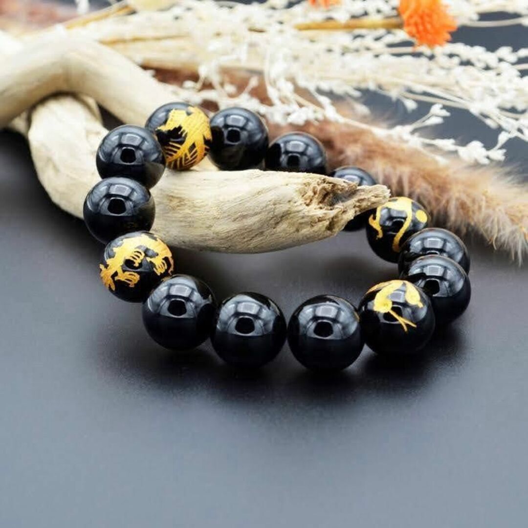 四神 オニキス 金 16mm ブレスレット 金彫り 手彫り 彫刻 パワーストーン レディース メンズ ユニセックス 新品未使用 送料無料 匿名配送
