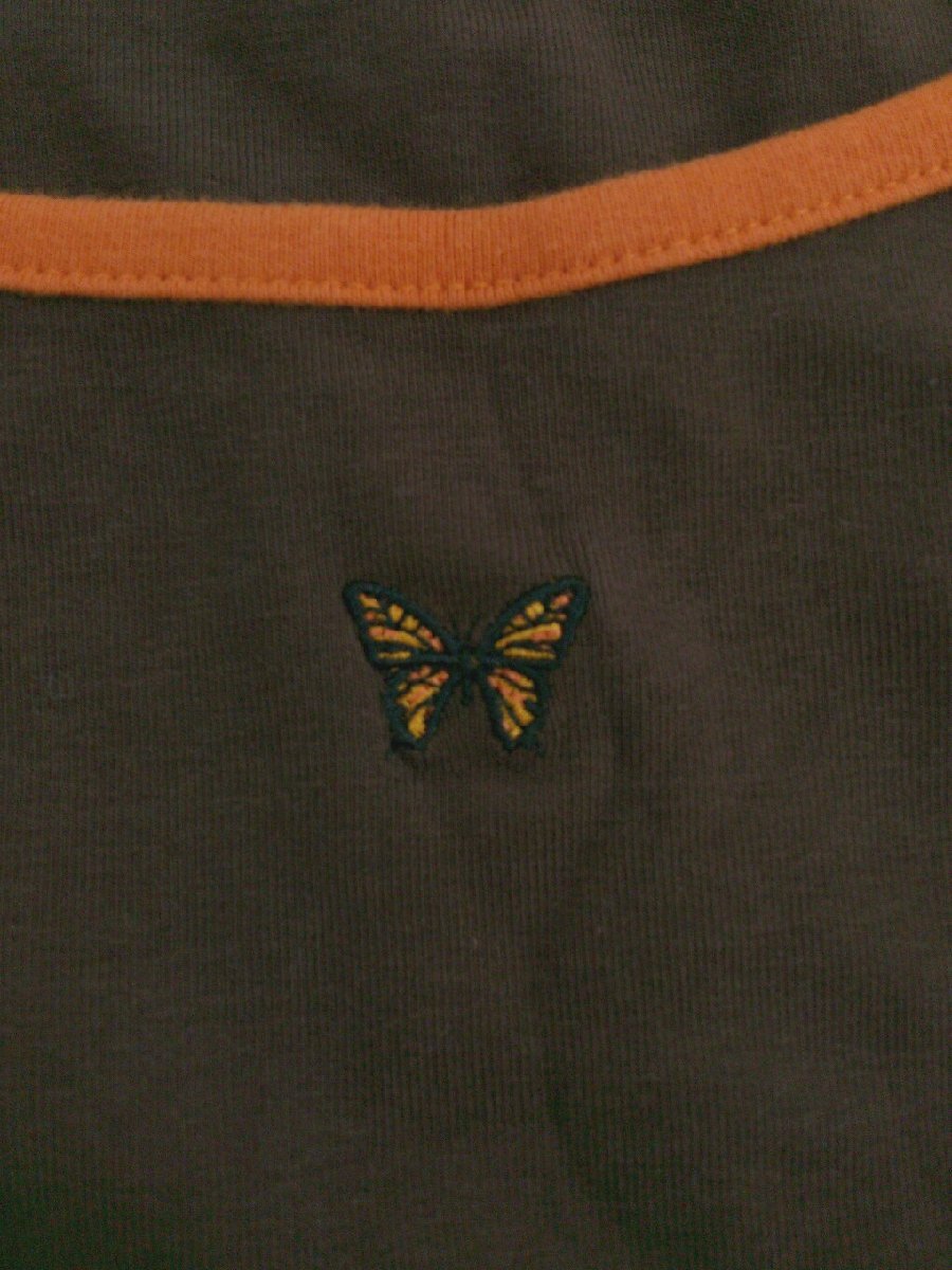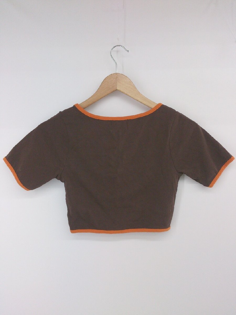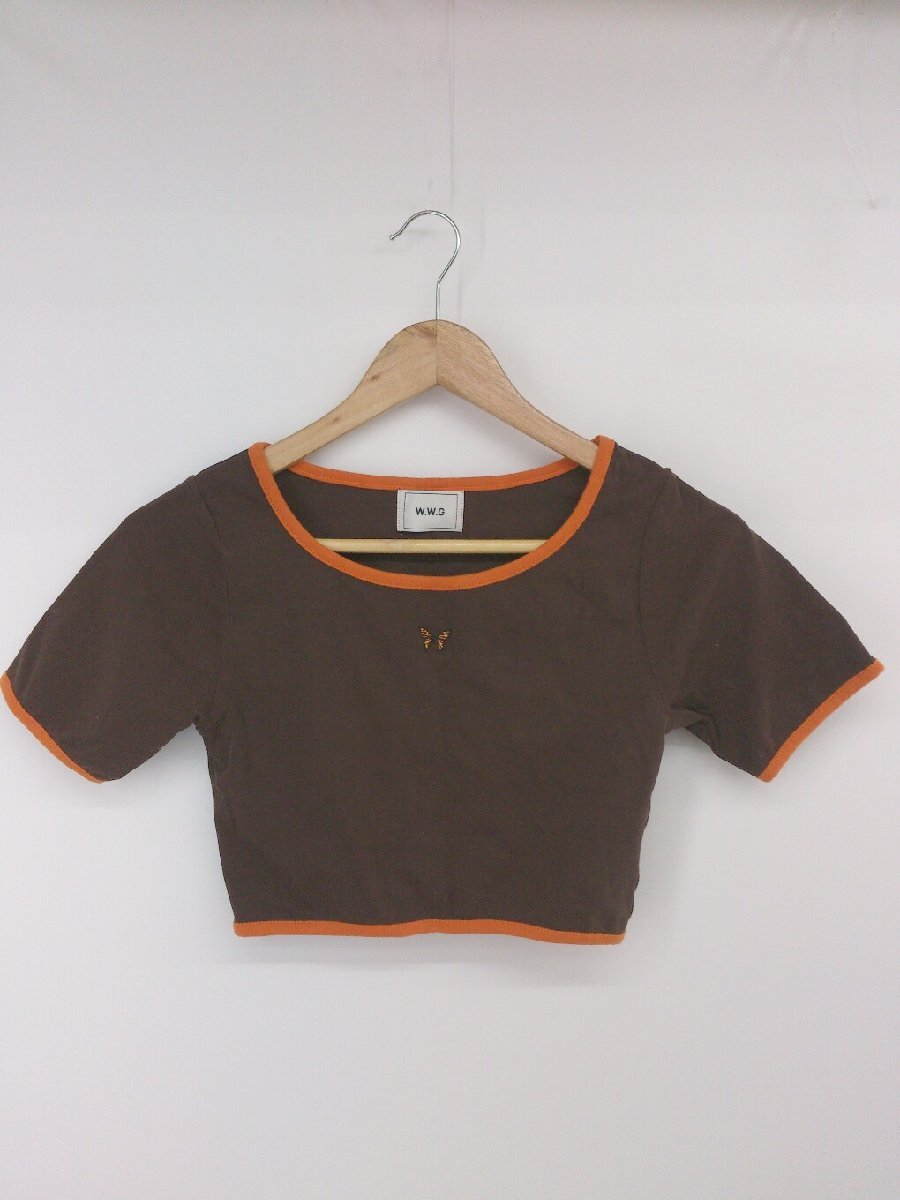 ◇ WHO'S WHO gallery カジュアル 蝶 刺繍 ショート丈 半袖 Tシャツ カットソー サイズF ブラウン オレンジ系 レディース P
