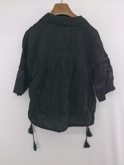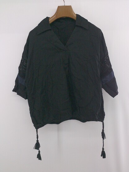 ◇ Dessin デッサン スキッパー 切替 メッシュ 五分袖 ブラウス カットソー サイズ2 ブラック系 レディース P