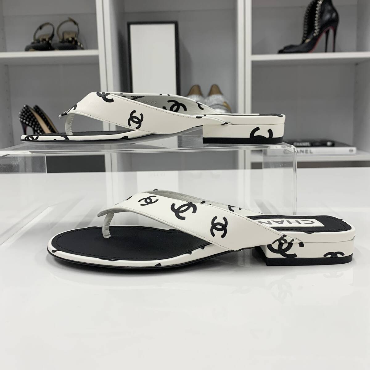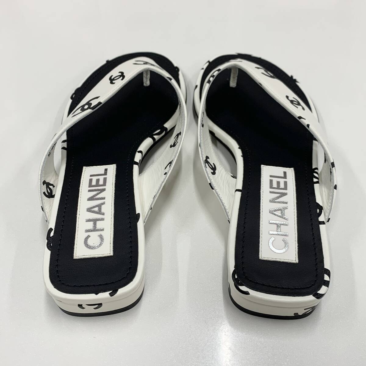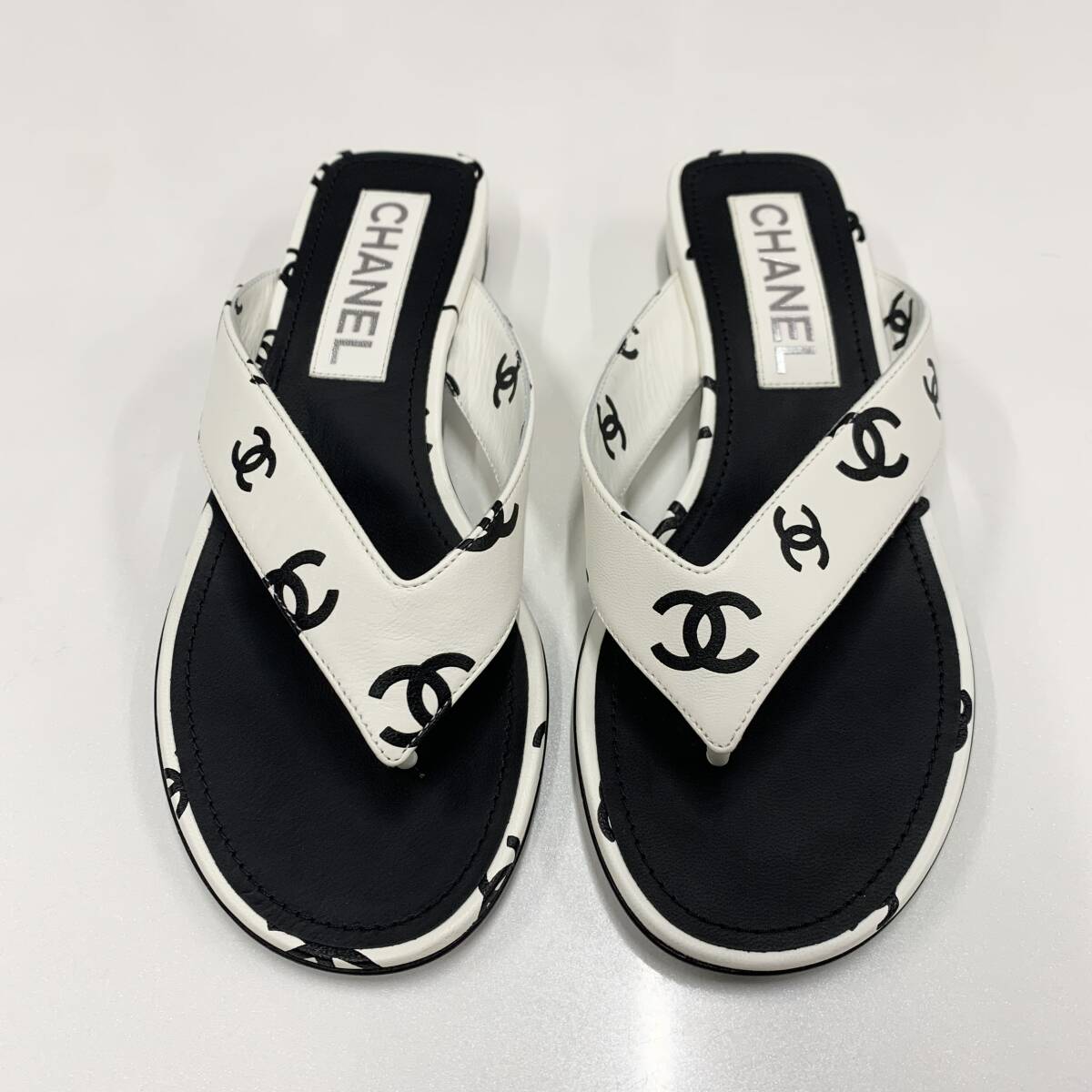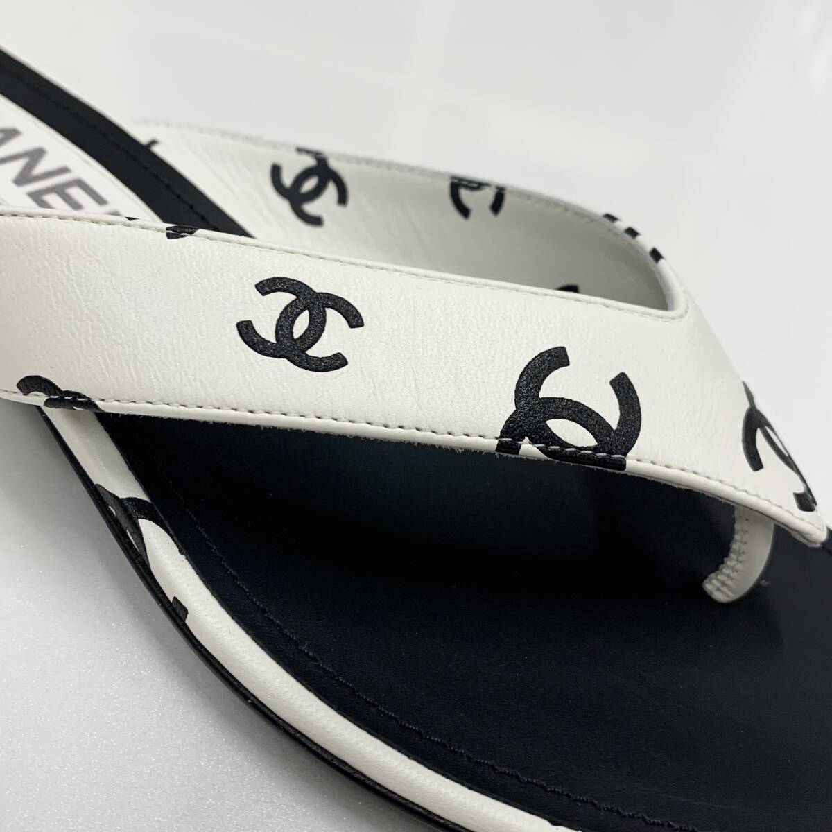 未使用 シャネル レザー ココマーク トングサンダル ホワイト