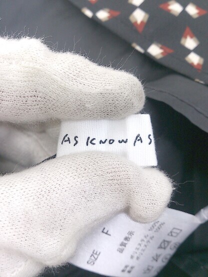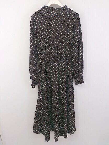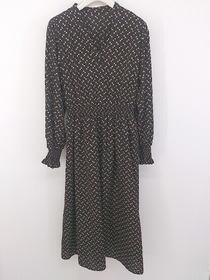 ◇ AS KNOW AS PLUS 総柄 スキッパー 長袖 膝下丈 ワンピース サイズF ブラック ベージュ系 レディース P