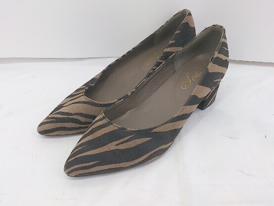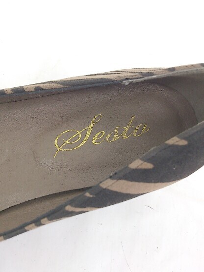 ◇ SESTO セスト ポインテッドトゥ ゼブラ柄 ローヒールパンプス サイズ23 ブラウン ブラック レディース P