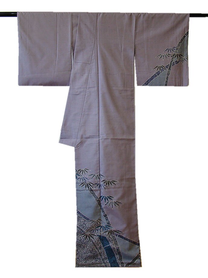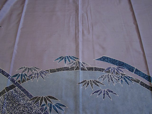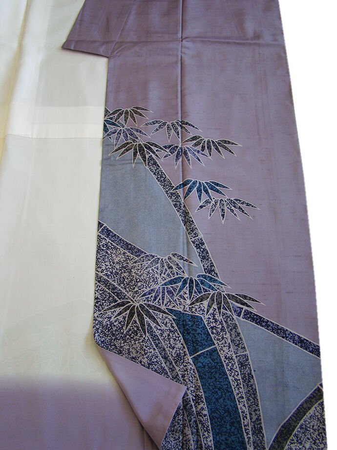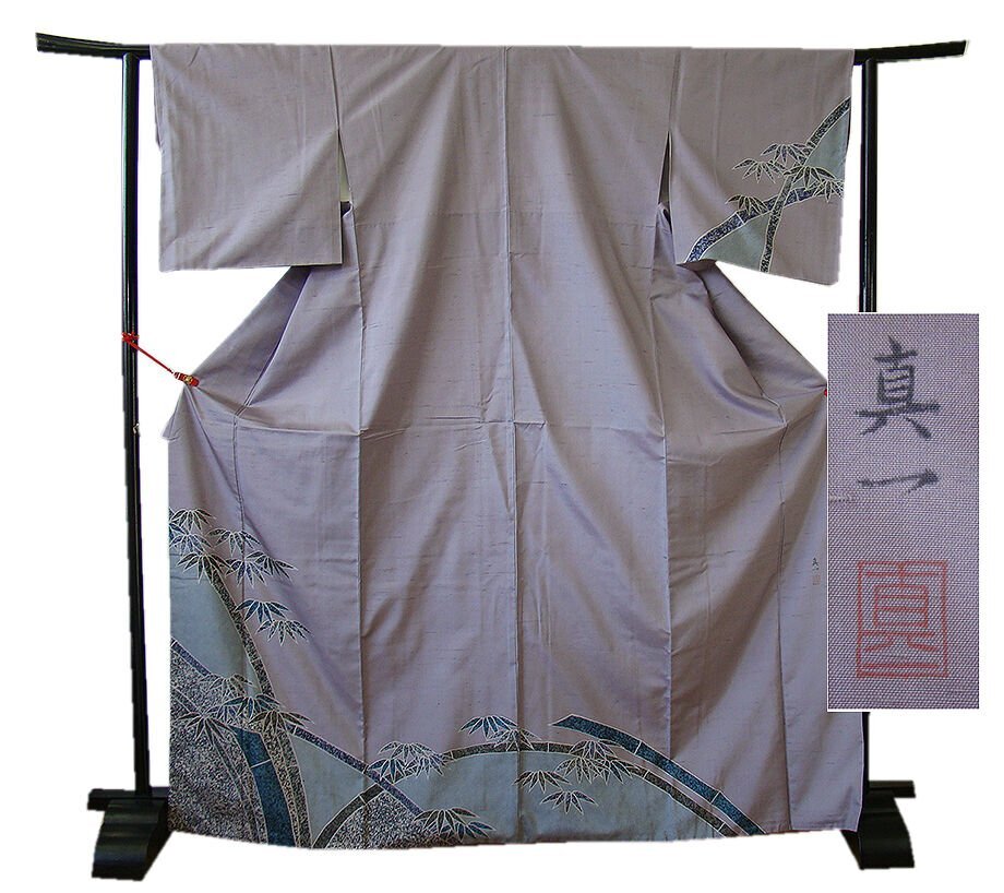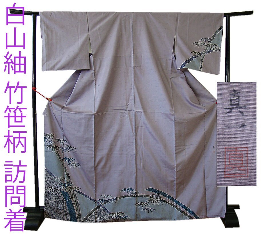 ★美品★ロング寸!帯や小物次第で様々な表情をお愉しみ頂ける逸品!! 作家物!白山紬に竹笹柄の趣溢れる粋な訪問着(正絹) U192★ | |