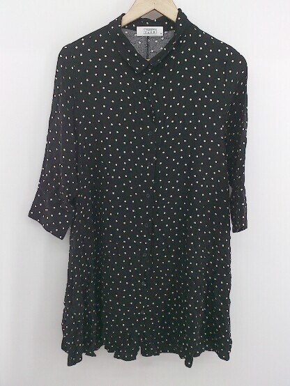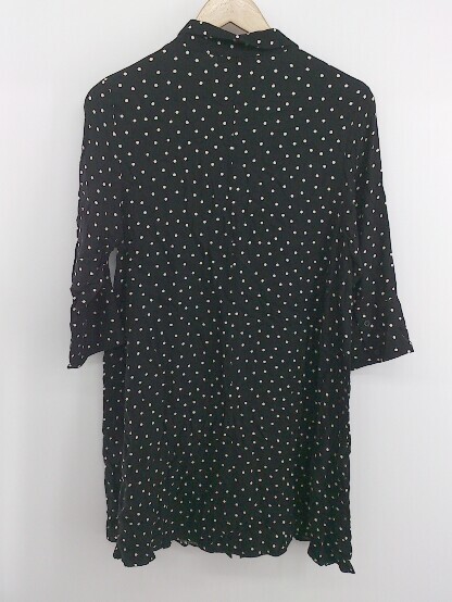 ◇ LOWRYS FARM ローリーズファーム ドット 水玉 レーヨン 七分袖 ミニ シャツ ワンピース サイズM ブラック レディース P
