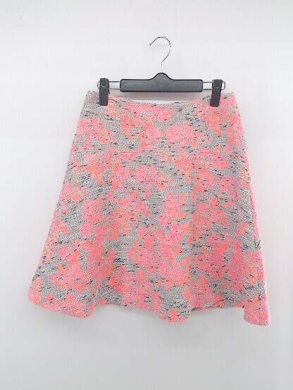◇ Demi-Luxe BEAMS 花柄 ネオンカラー オトナ女子 膝丈 フレア スカート サイズ38 ピンク マルチ レディース E