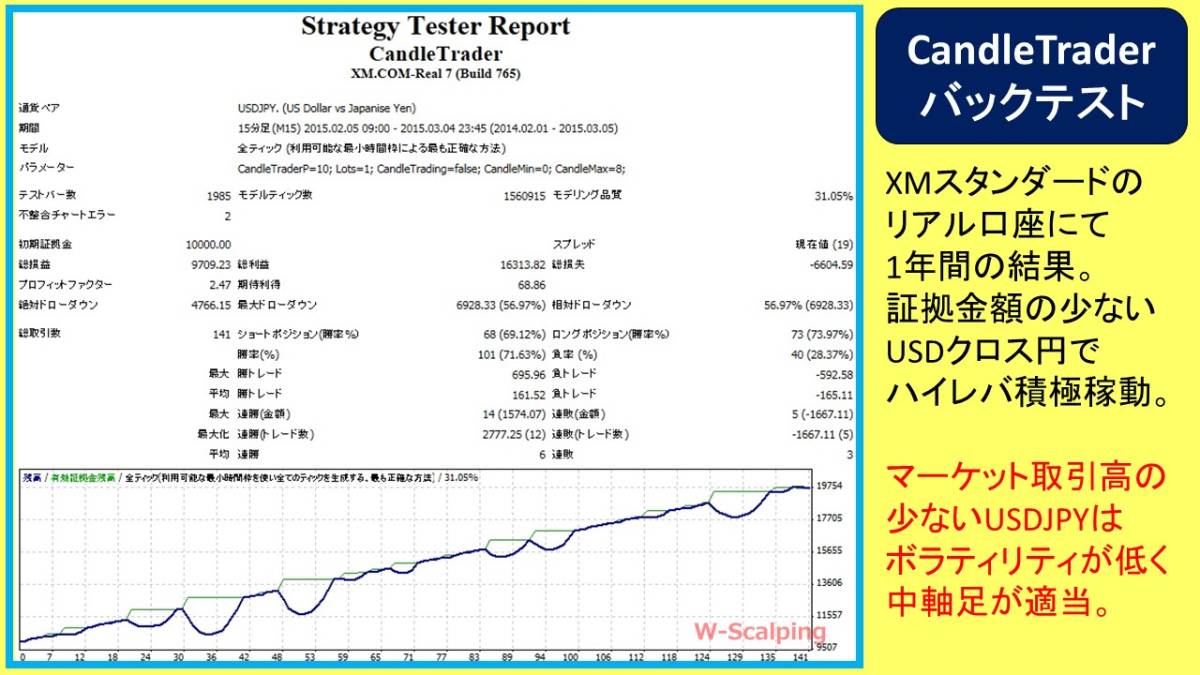 CandleTraderはUSDJPYの15分足で良好稼動が得られます。