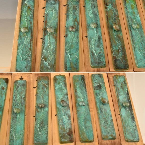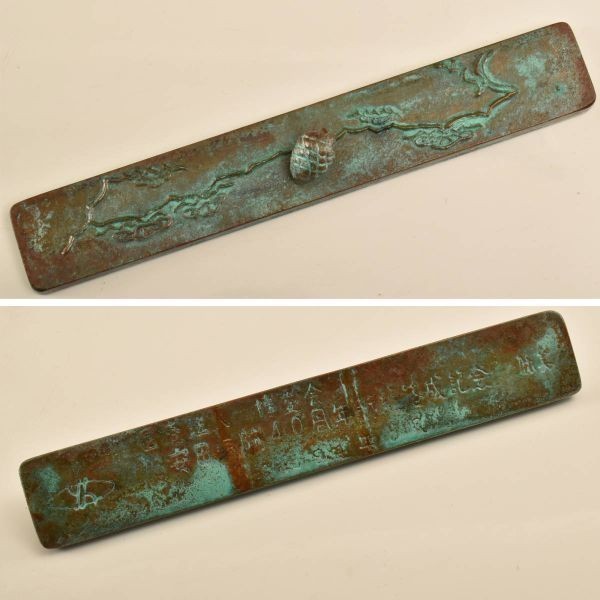 T11928 中島保美 青銅松文書鎮 40個:真作