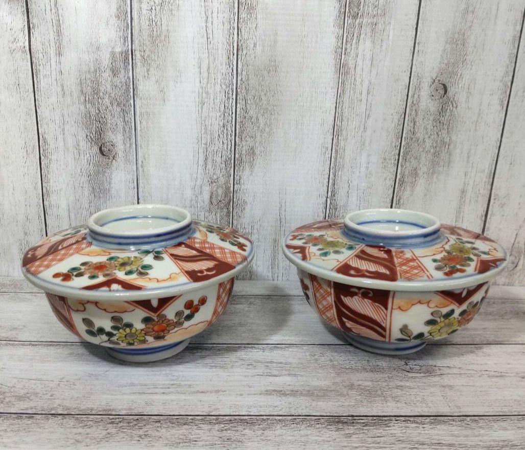 昭和レトロ 蓋つき茶碗 染付 2個 和食器 微妙に違っていて2つ全く同じではありません