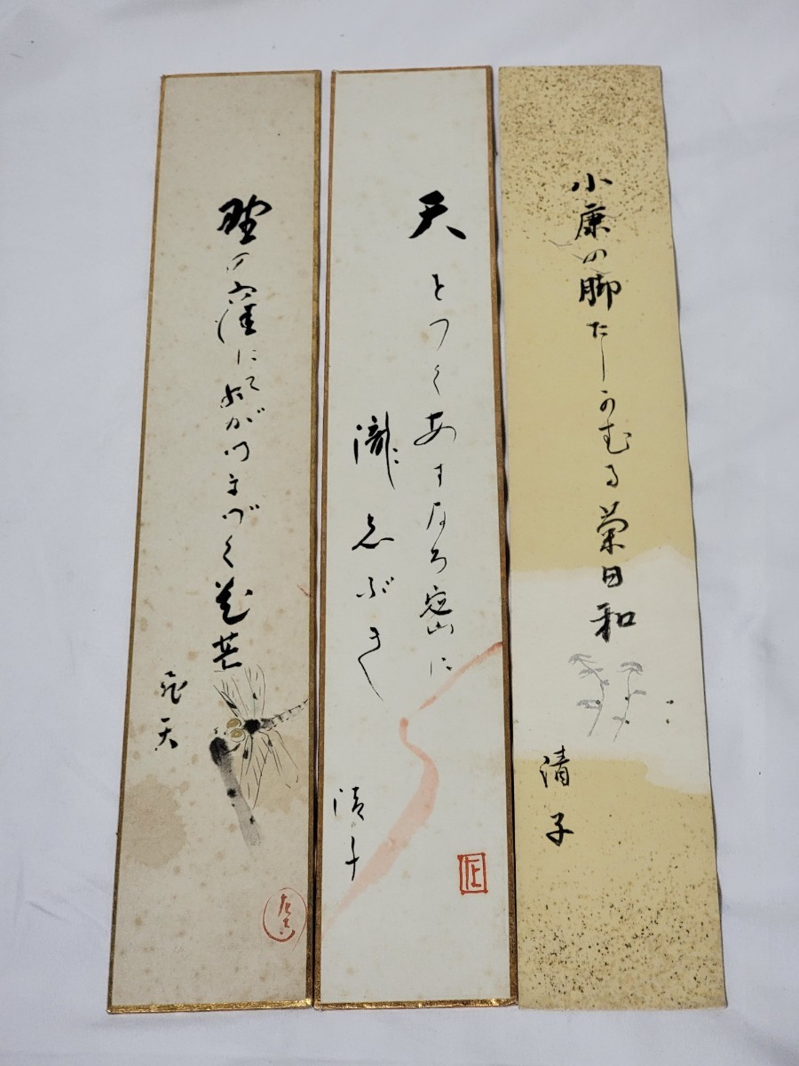 九谷焼 作家 短冊 3点セット 肉筆 松本佐吉 など